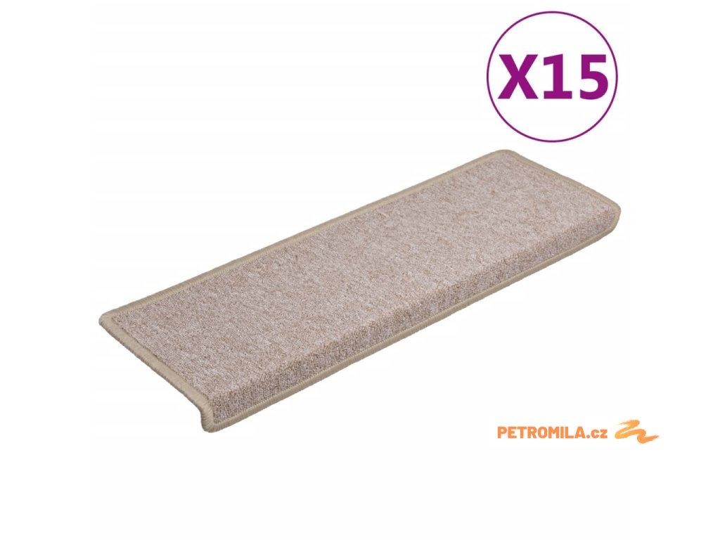 Schodové rohože 15 ks 65 x 21 x 4 cm béžové s obdélníkovým okrajem