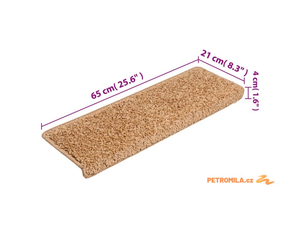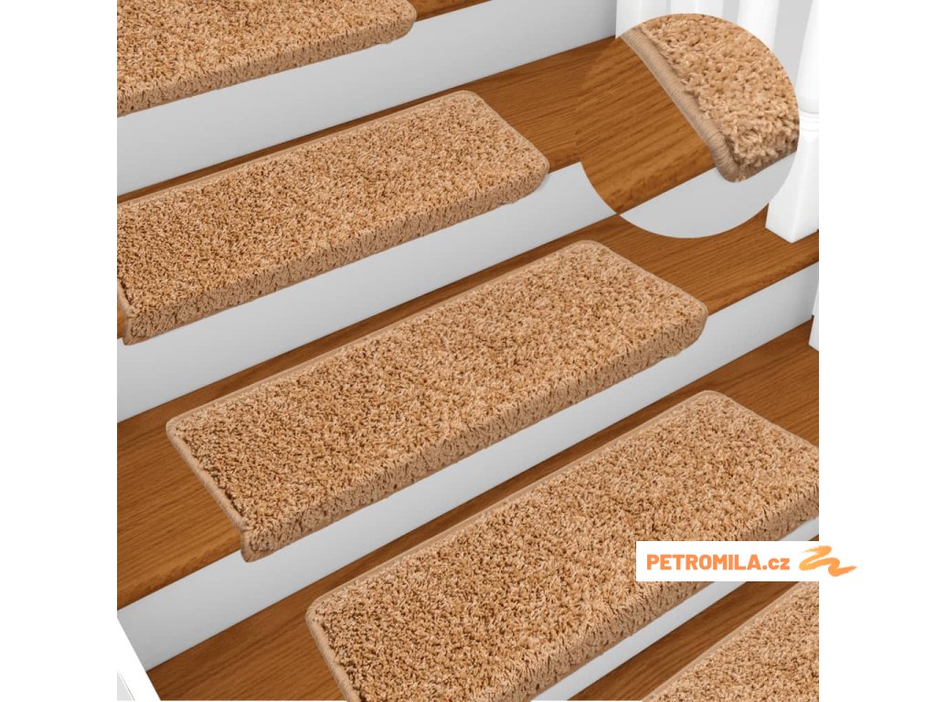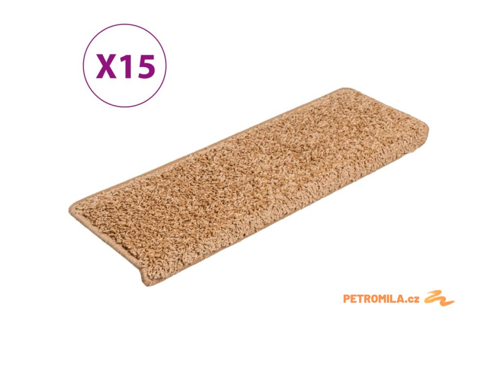 Schodové rohože 15 ks 65 x 21 x 4 cm béžové s obdélníkovým okrajem