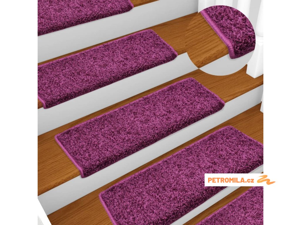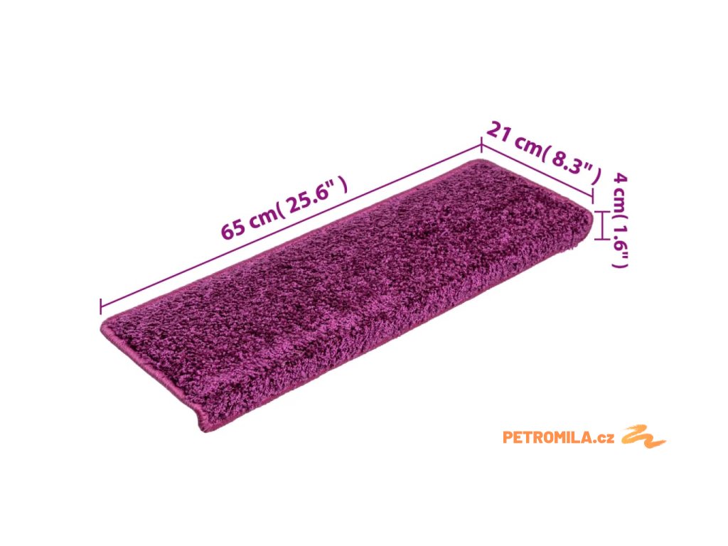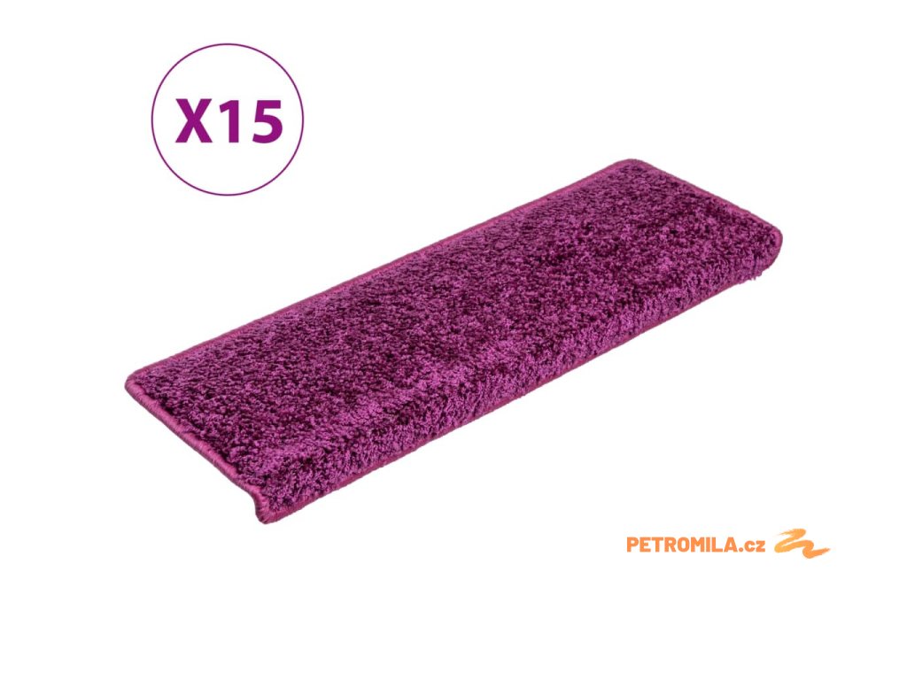 Schodové rohože 15 ks 65 x 21 x 4 cm fialové s obdélníkovým okrajem
