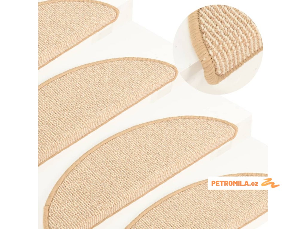 Schodové rohože 15 ks 65 x 21 x 4 cm krémové, půlkulaté, velké