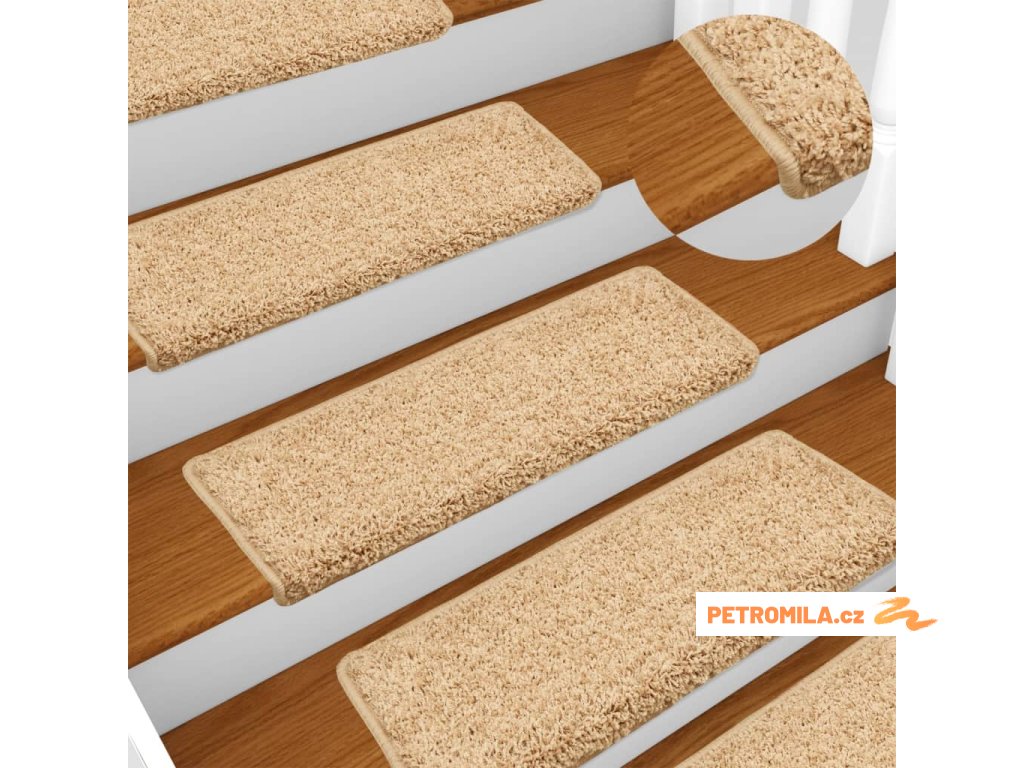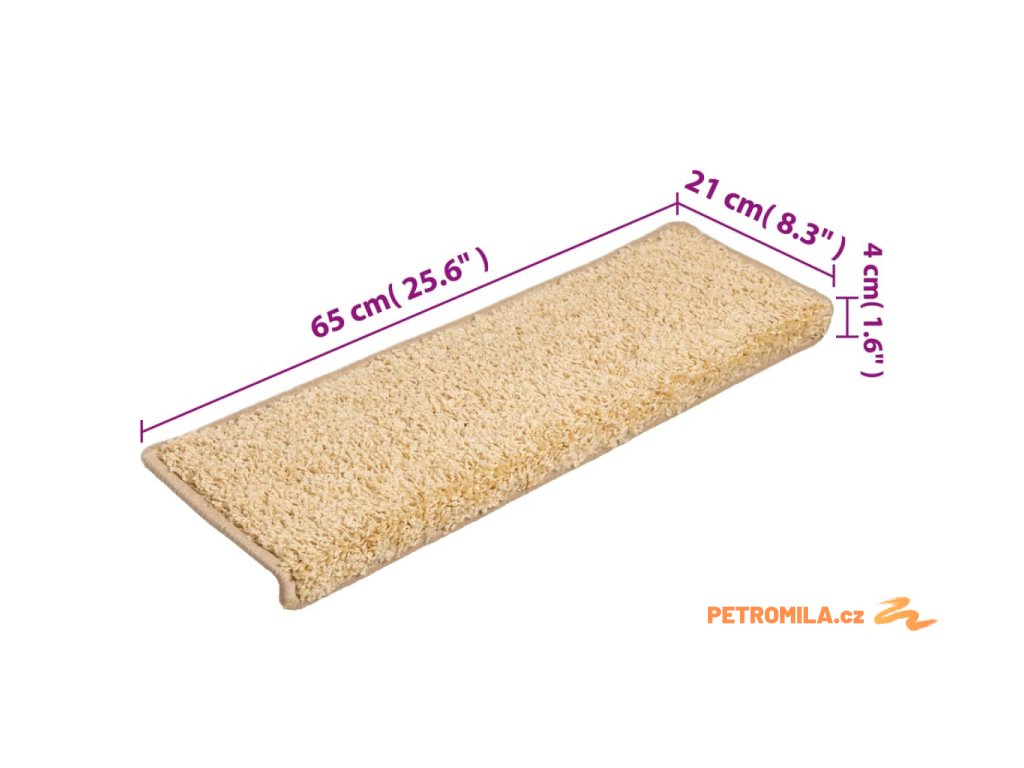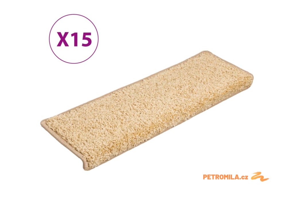 Schodové rohože 15 ks 65 x 21 x 4 cm krémové s obdélníkovým okrajem