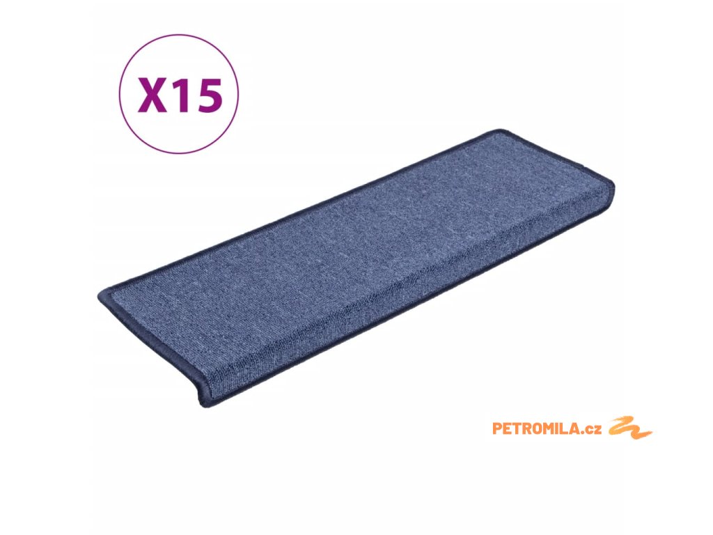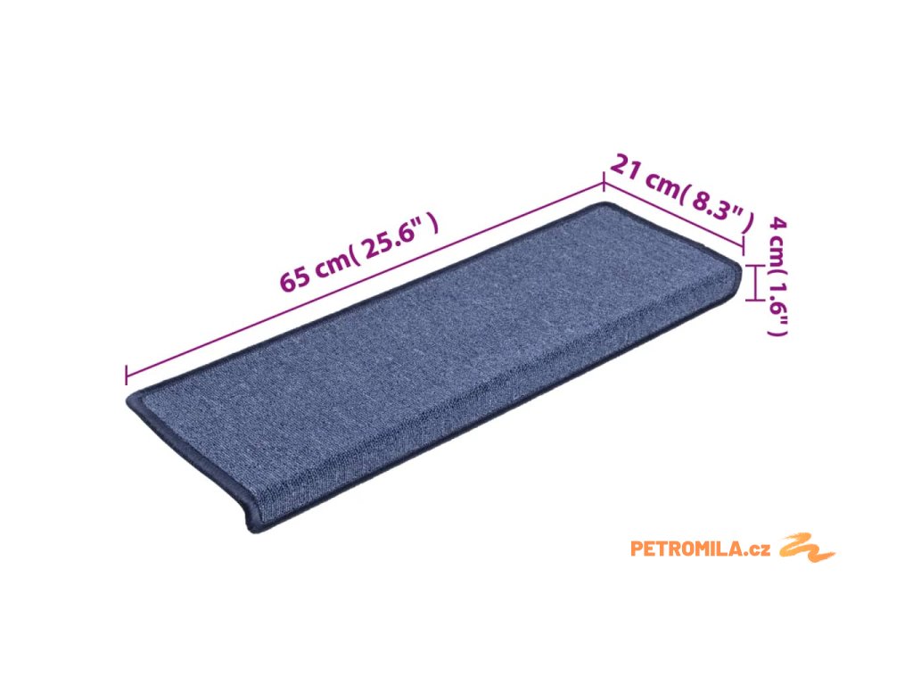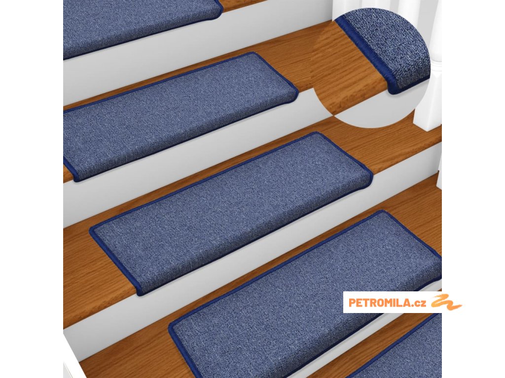 Schodové rohože 15 ks 65 x 21 x 4 cm modré s obdélníkovým okrajem