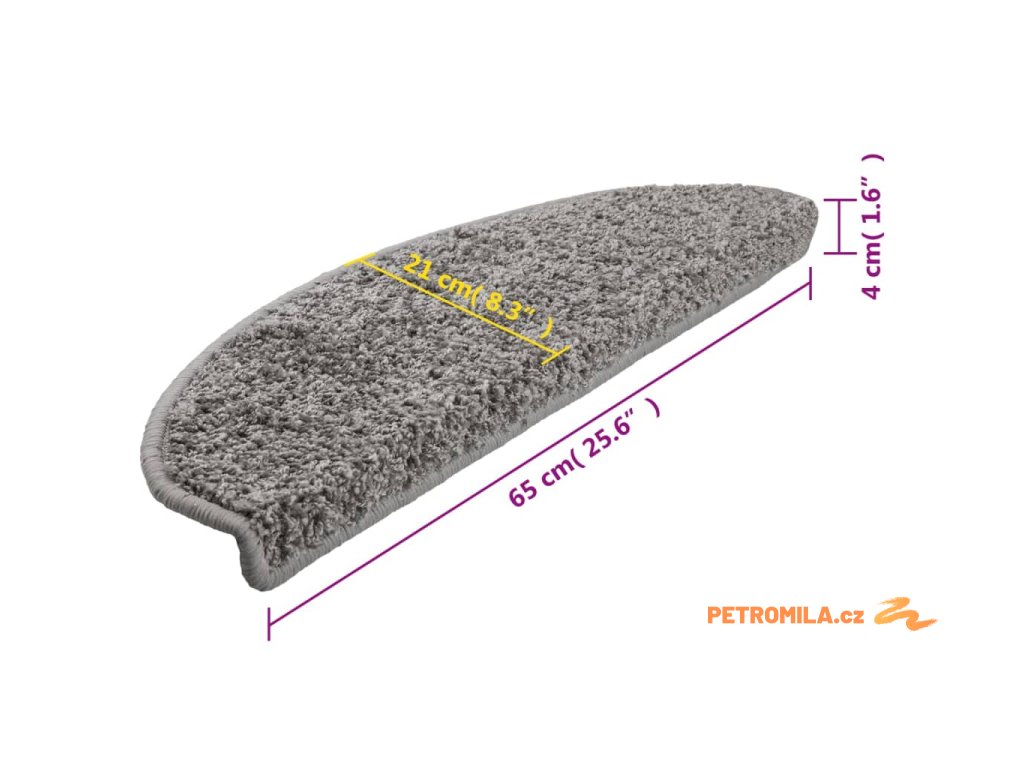 Schodové rohože 15 ks 65 x 21 x 4 cm šedé, půlkulaté, velké