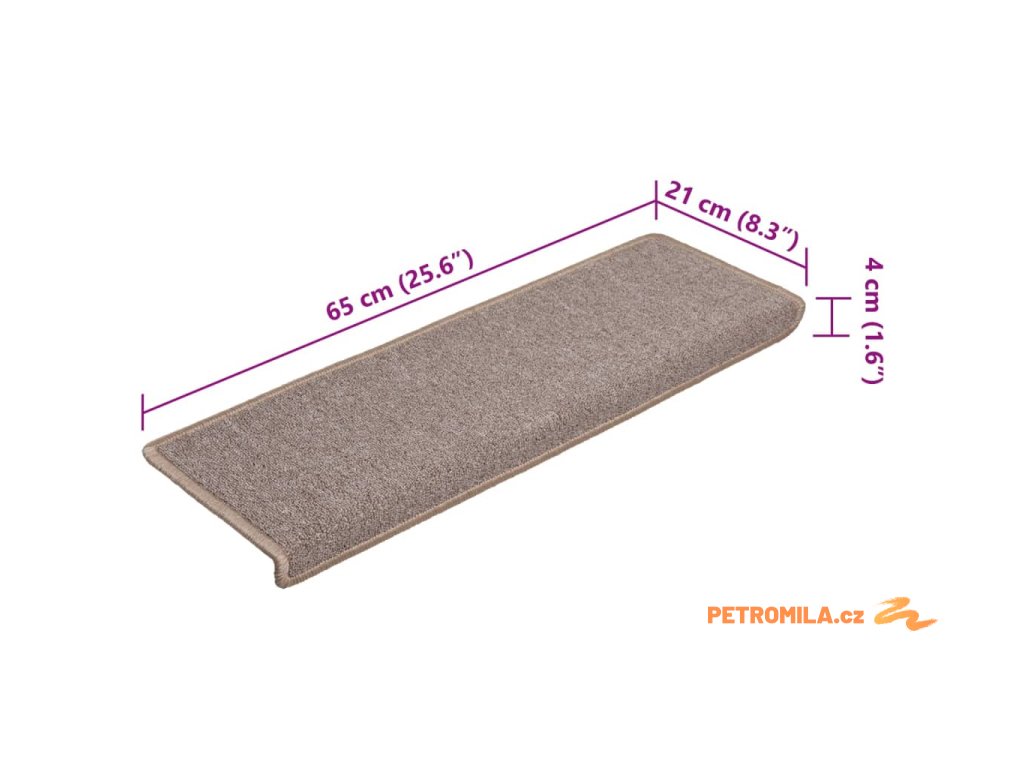 Schodové rohože 15 ks 65 x 21 x 4 cm světle hnědé s obdélníkovým okrajem