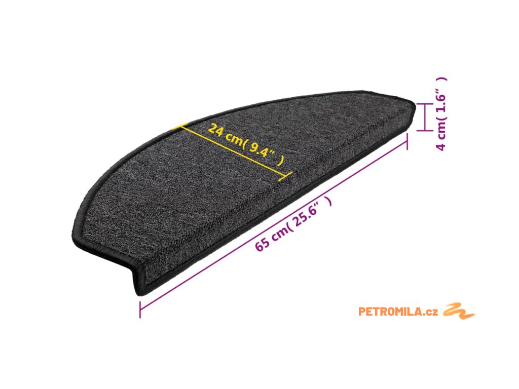 Schodové rohože 15 ks 65 x 24 x 4 cm antracitové, půlkulaté, velké