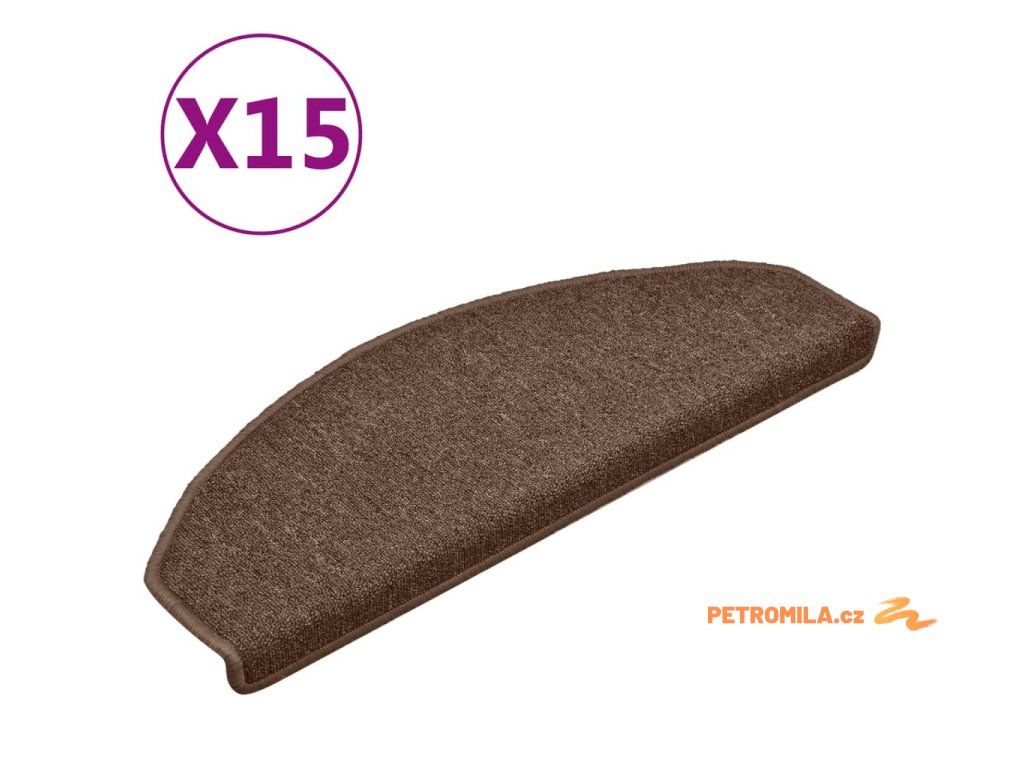 Schodové rohože 15 ks 65 x 24 x 4 cm hnědé, půlkulaté, velké