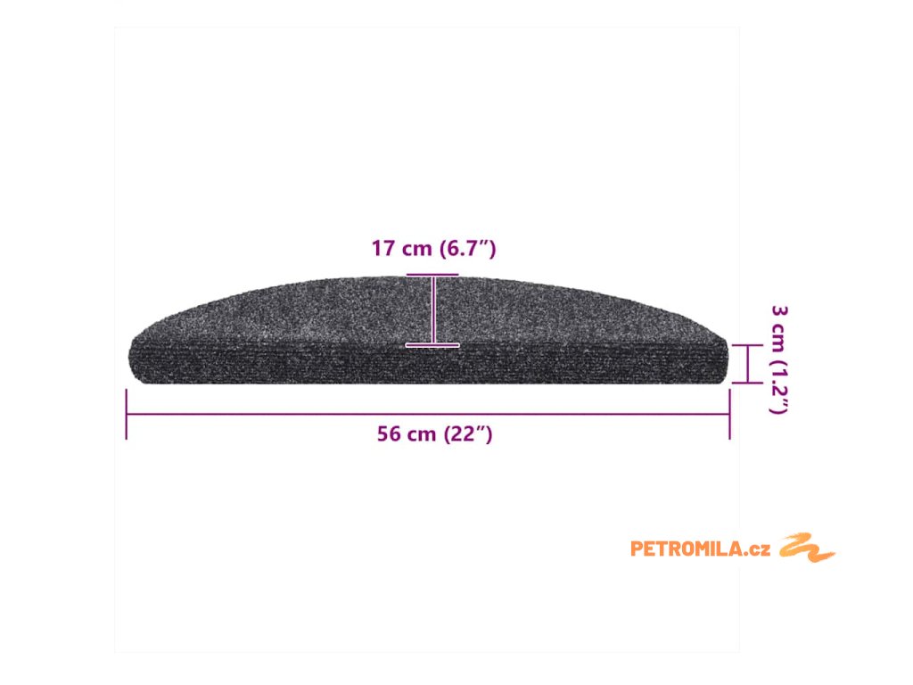 Schodové rohože samolepicí 10 ks 56 x 17 x 3 cm tmavě šedé půlkulaté