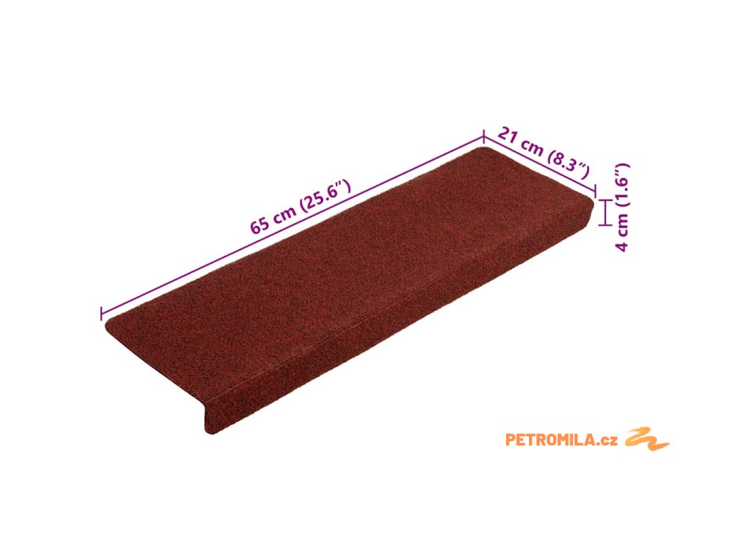 Schodové rohože samolepicí 10 ks 65 x 21 x 4 cm bordó červená s obdélníkovým okrajem