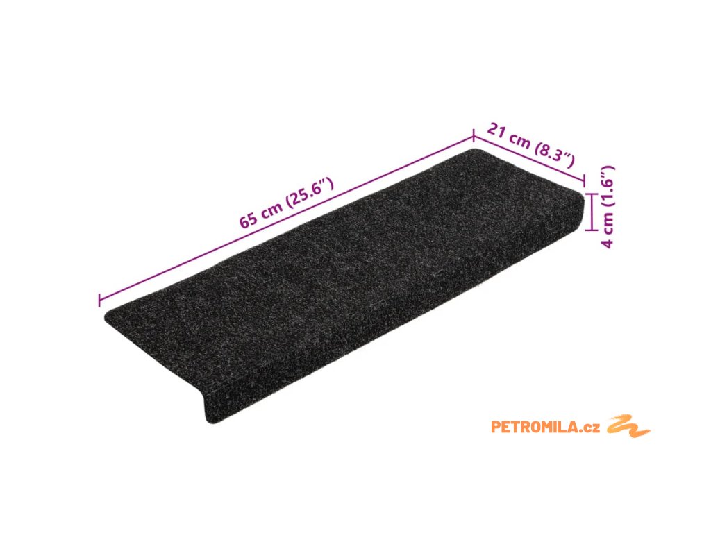Schodové rohože samolepicí 10 ks 65 x 21 x 4 cm černé s obdélníkovým okrajem