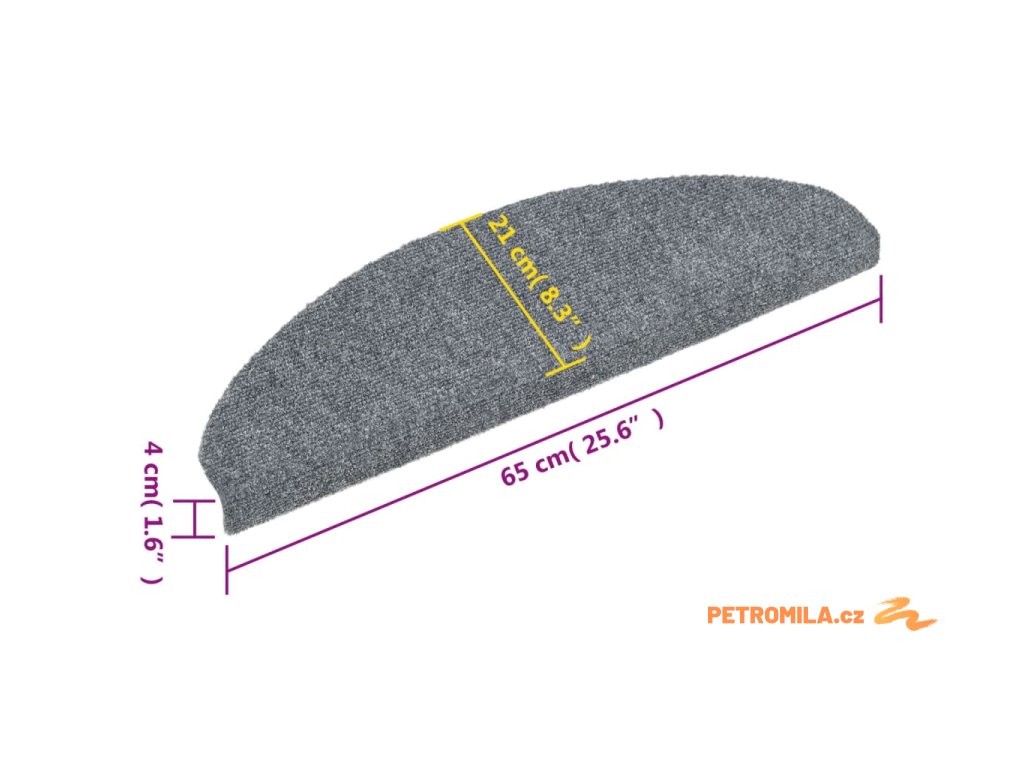 Schodové rohože samolepicí 10 ks 65 x 21 x 4 cm světle šedé, půlkulaté, velké