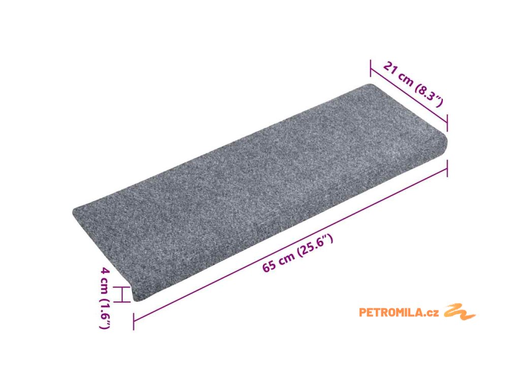 Schodové rohože samolepicí 10 ks 65 x 21 x 4 cm světle šedé s obdélníkovým okrajem