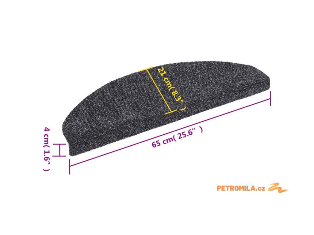 Schodové rohože samolepicí 10 ks 65 x 21 x 4 cm tmavě šedé, půlkulaté, velké