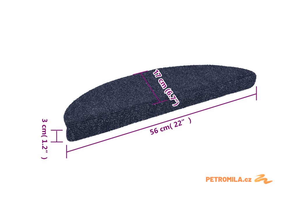 Schodové rohože samolepicí 15 ks 56 x 17 x 3 cm modré půlkulaté
