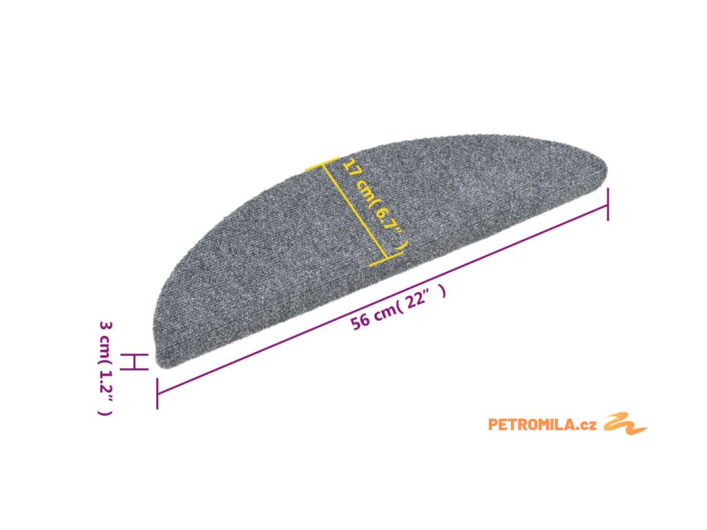 Schodové rohože samolepicí 15 ks 56 x 17 x 3 cm světle šedé půlkulaté