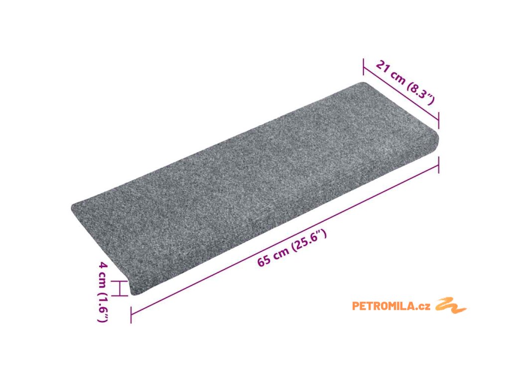 Schodové rohože samolepicí 15 ks 65 x 21 x 4 cm světle šedé s obdélníkovým okrajem