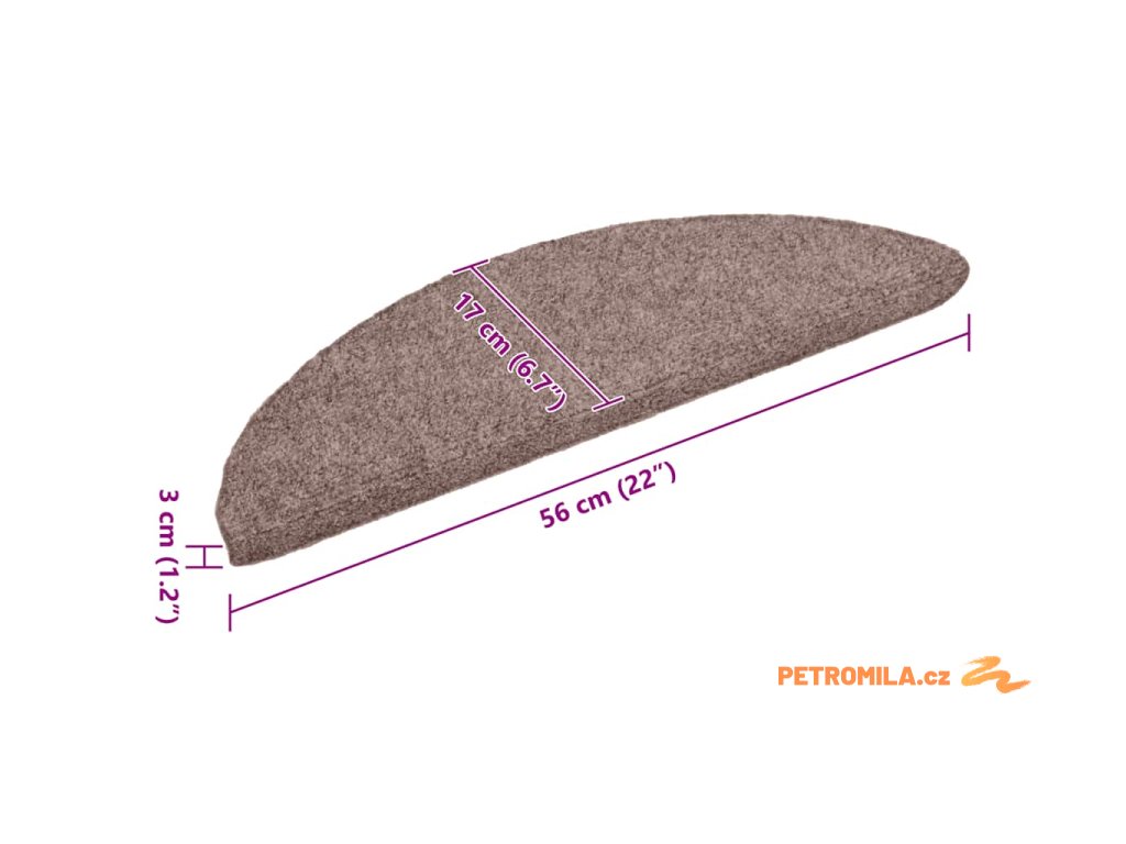 Schodové rohože samolepicí 5 ks 56 x 17 x 3 cm světle hnědé, půlkulaté