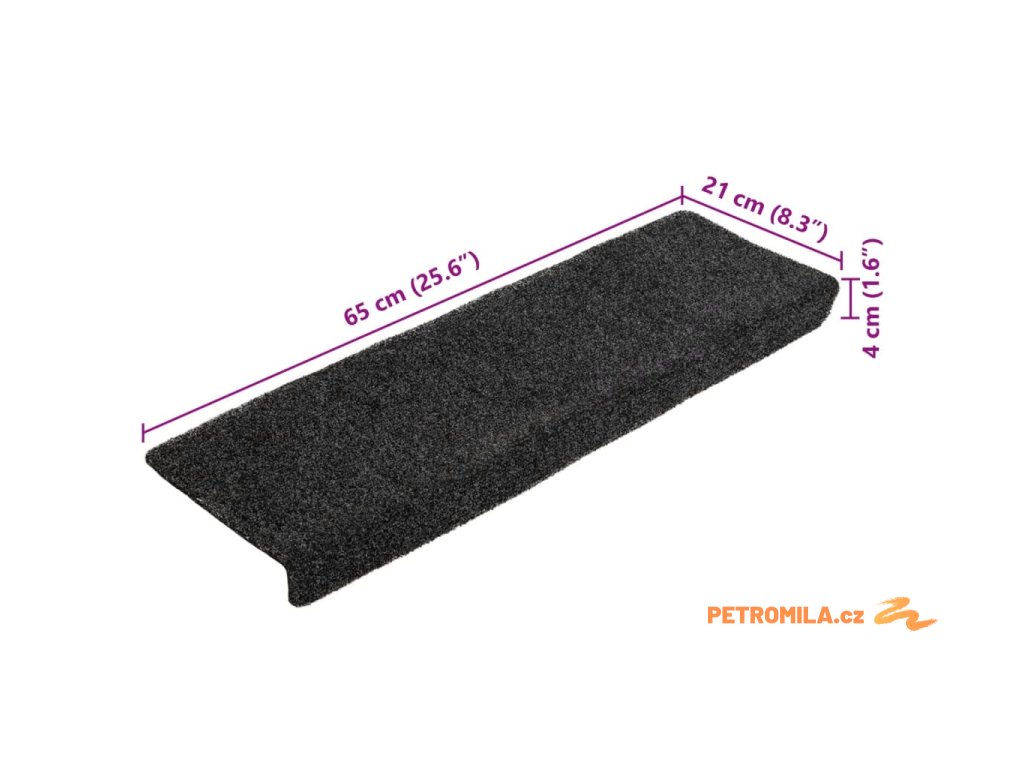 Schodové rohože samolepicí 5 ks 65 x 21 x 4 cm šedé s obdélníkovým okrajem