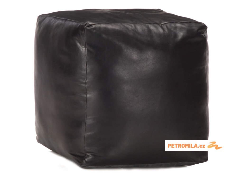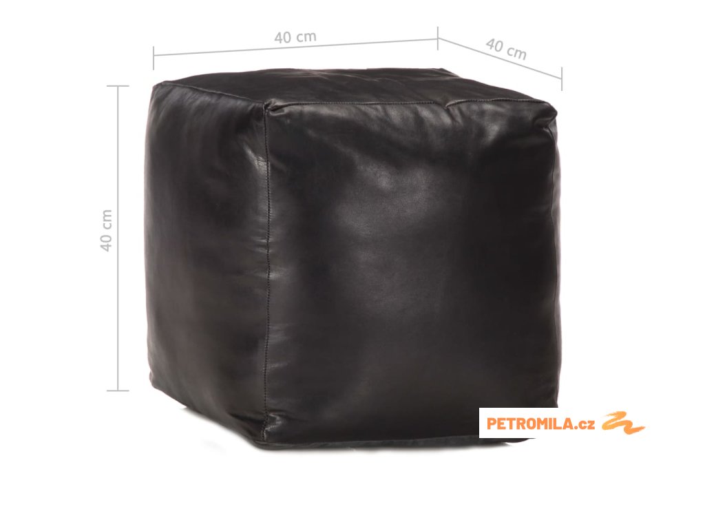 Sedací puf černý 40 x 40 x 40 cm pravá kozí kůže