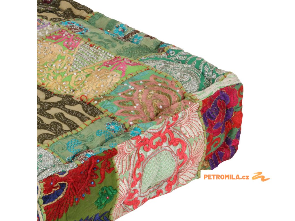 Tento taburet je ručně vyrobený ze 100% bavlny s výplní, a je tudíž měkký a pohodlný. Je hustě pokrytý nádhernými exotickými výšivkami, které vaší domácnosti dodají indický styl.