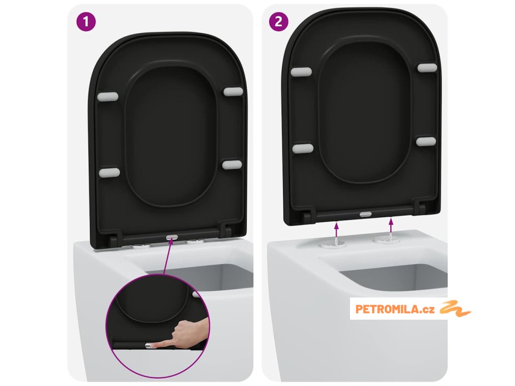Sedátko na toaletu s rychlým uvolněním Černá 44.5 x 35 x 3.6 cm