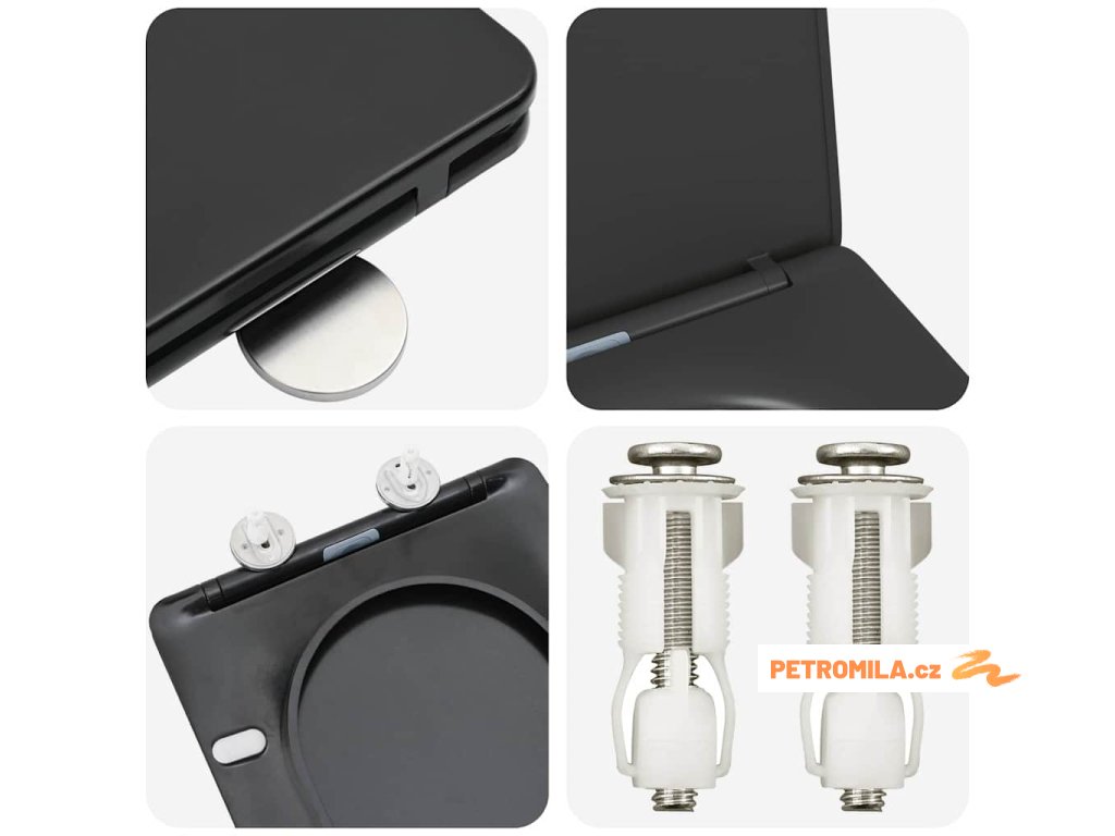 - Materiály: Toaletní sedátko je vyrobeno z duroplastu, což je odolný materiál, který se nelekejte blednutí. Hladká textura dodává moderní vzhled a zároveň se snadno čistí. Je stavěné na každodenní používání, aniž by ztratilo svůj vzhled, a duroplast je pohodlný pro sezení.