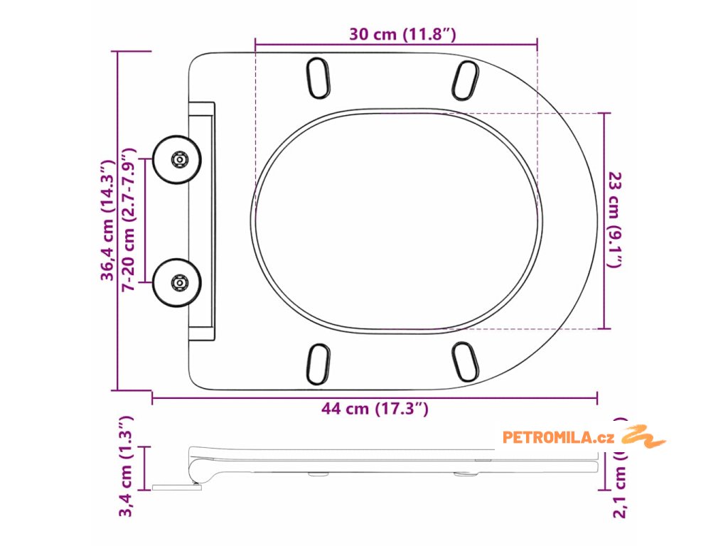 Toaletní sedátko s rychlým uvolněním a měkkým zavřením dodá vaší koupelně moderní a stylový pocit. Má minimalistický design, který skvěle ladí s dnešními trendy. Snadno se čistí díky mechanismu rychlého uvolnění, takže je to ideální volba pro ty, suitable for co si potrpí na hygienu a pohodlí. Hladký matný povrch dodává elegantní a vyleštěný vzhled. Plus, je vyrobeno z odolného duroplastu, takže ho jen tak něco nezlomí.