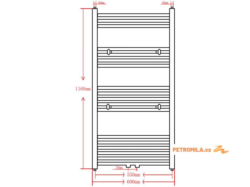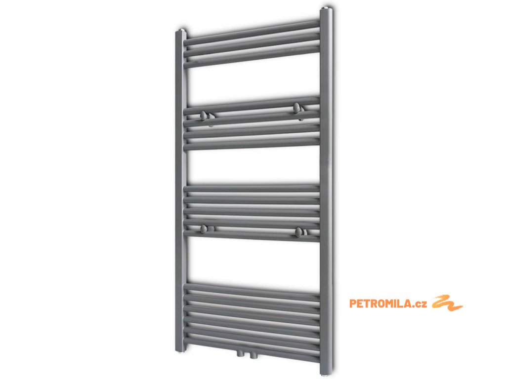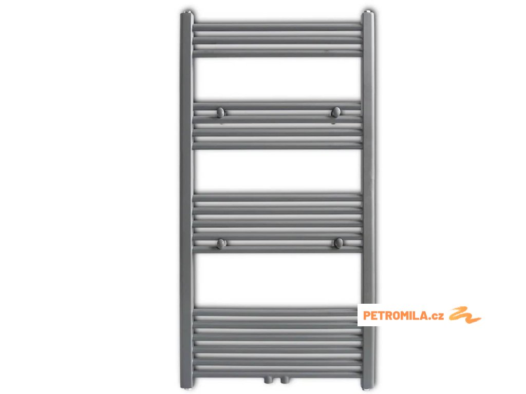 Šedý žebříkový radiátor na ručníky rovný ústřední topení 600 x 1160 mm