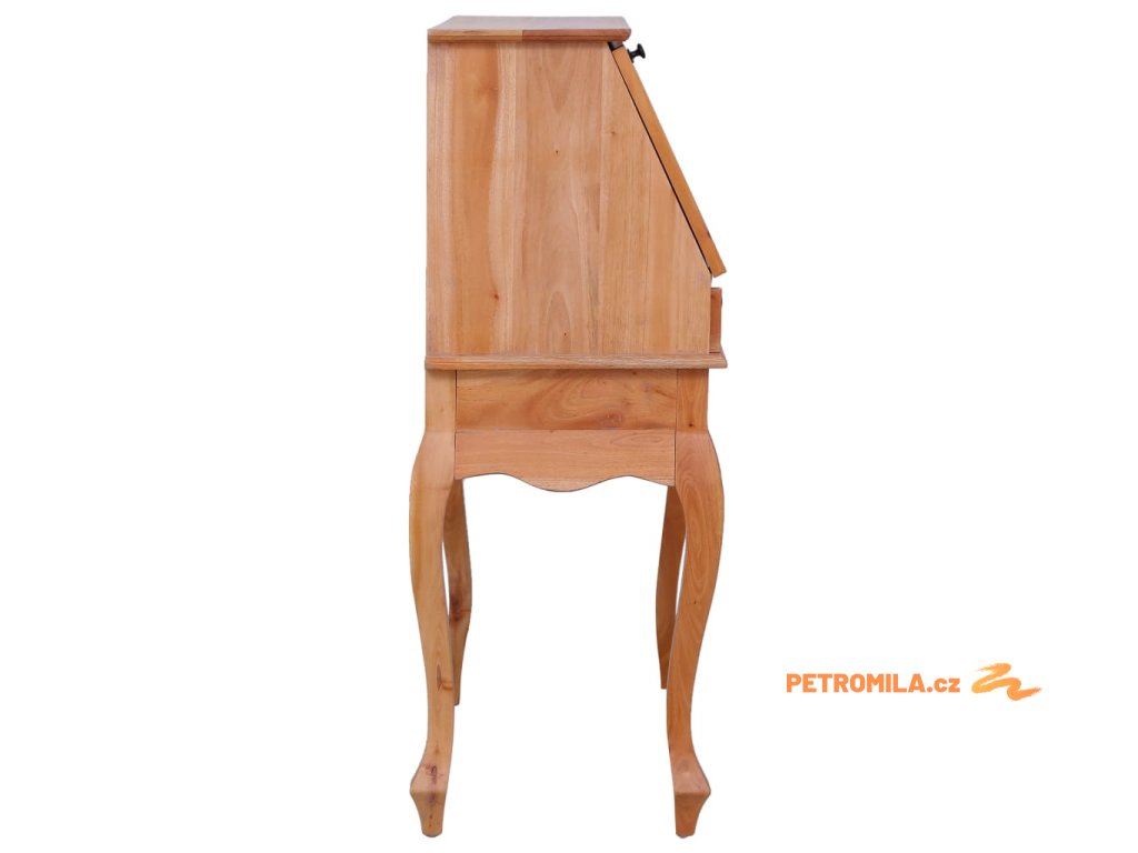 Sekretář je vybaven výklopnou stolní deskou, která nabízí velkou pracovní plochu s otevřenými přihrádkami a zásuvkami uvnitř, kde budete mít dostatek úložného prostoru pro uspořádání různých drobností na dosah ruky. Sekretář je vyrobený z masivního mahagonového dřeva, tropického tvrdého dřeva, které vyniká svou krásou, odolností a barvou. Jedinečné řemeslné zpracování přispívá k působivému retro stylu. Každá fáze výrobního procesu se provádí s největší péčí, ať už se jedná o leštění, natírání nebo lakování.