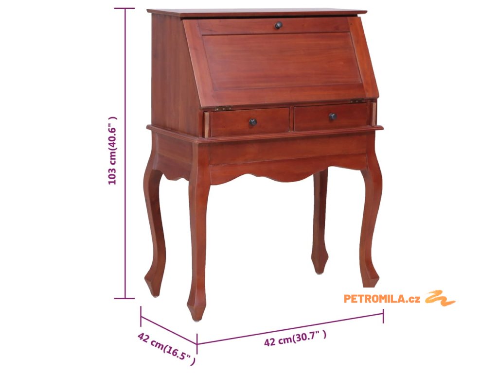 Sekretář hnědý 78 x 42 x 103 cm masivní mahagonové dřevo