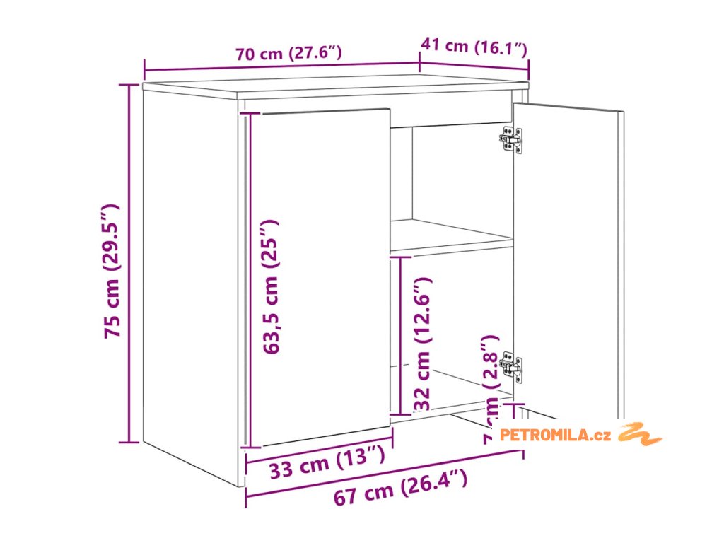 - Celkové rozměry: 70 x 41 x 75 cm (Š x H x V)