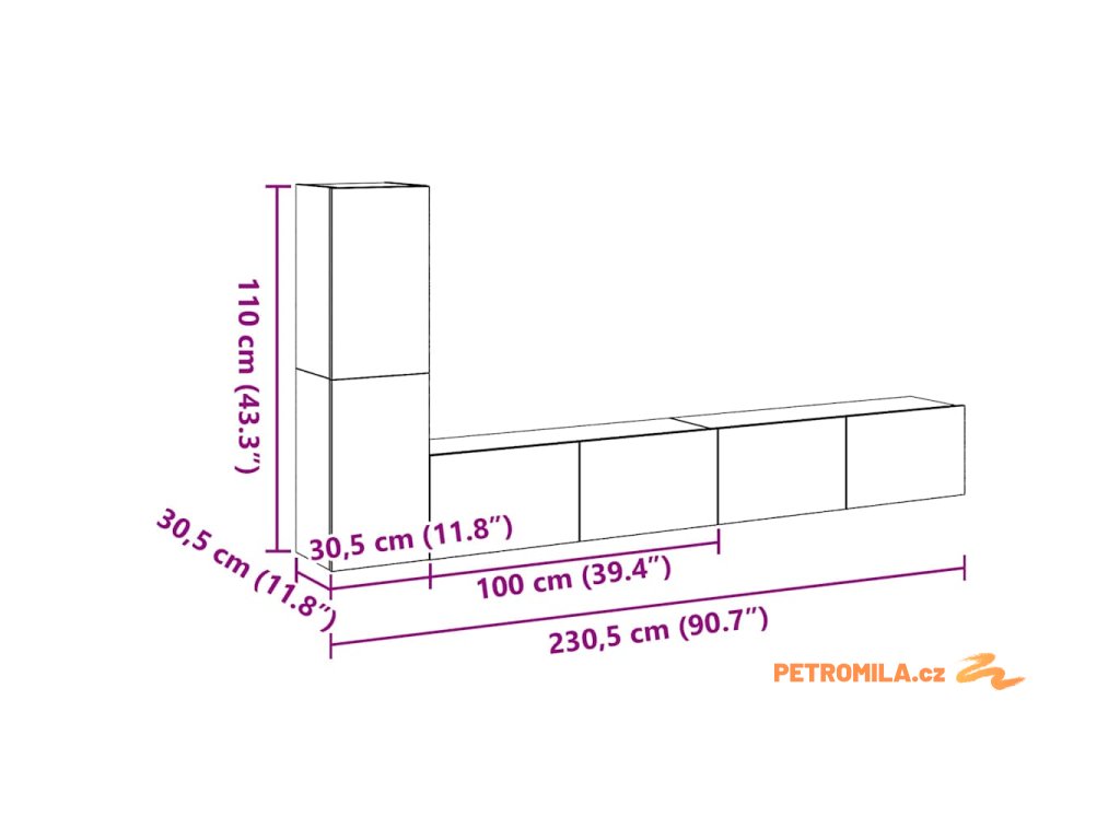 - Celkové rozměry: 100 x 30 x 30 cm (Š x H x V)