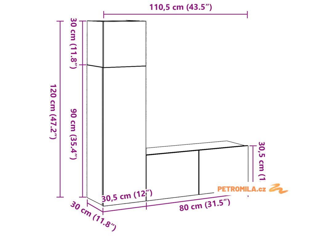Sestava TV skříněk Nástěnný 3 pcs Černý dub 130.5 x 30 x 140 cm