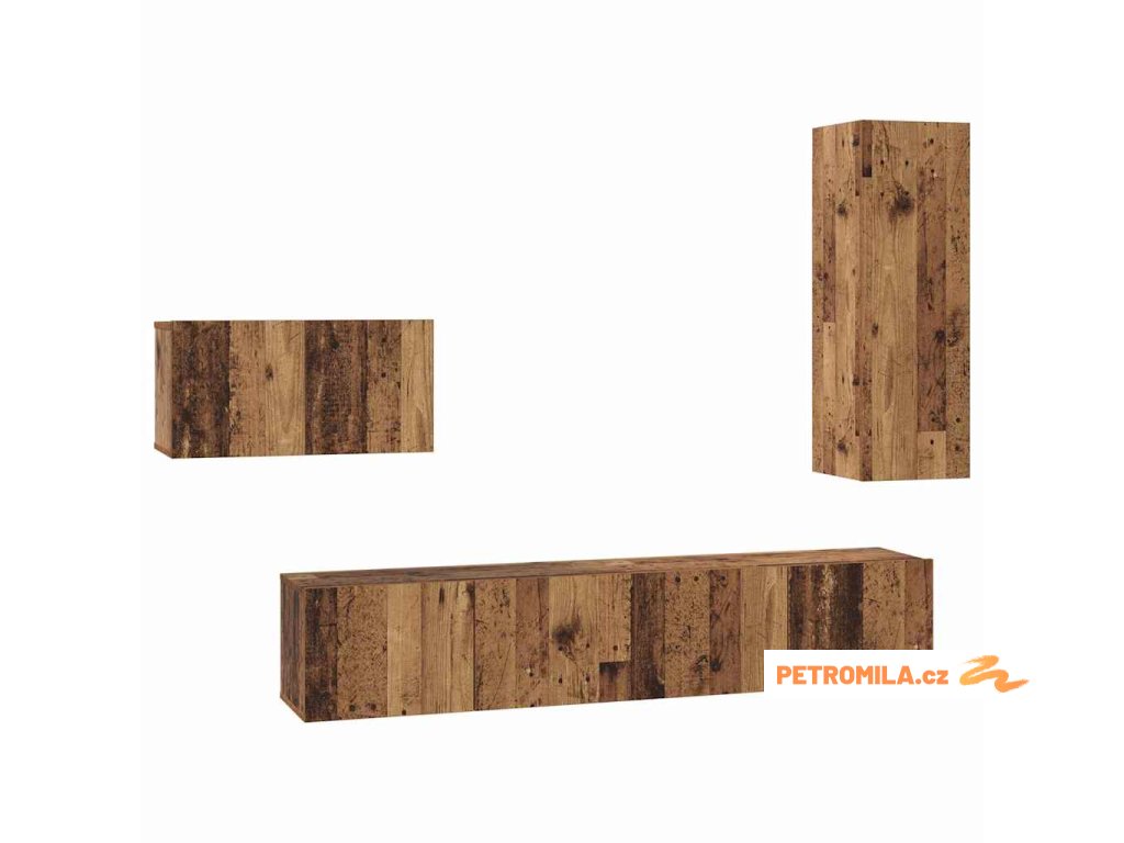 Sestava TV skříněk Nástěnný 4 pcs Staré dřevo 30.5 x 30 x 90 cm