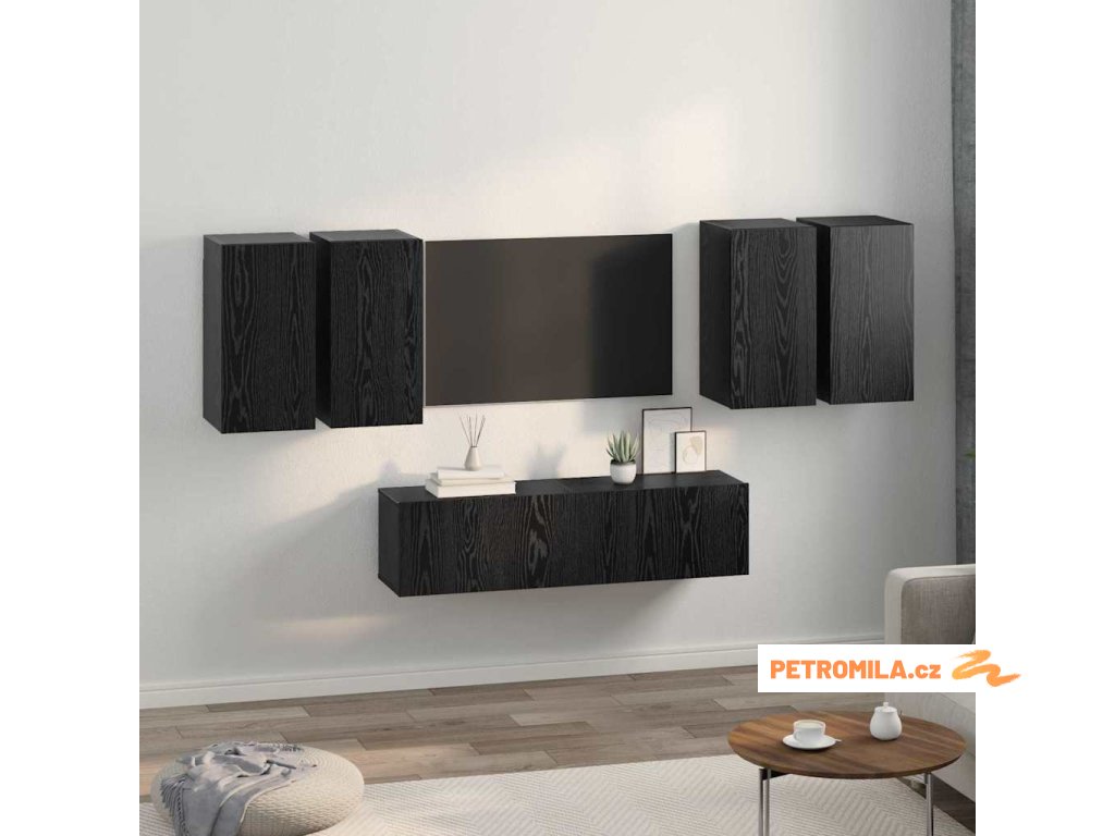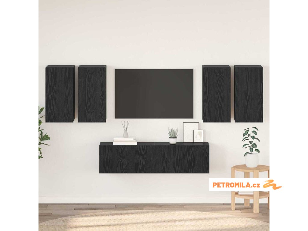Sestava TV skříněk Nástěnný 6 pcs Černý dub 60 x 30 x 30 cm
