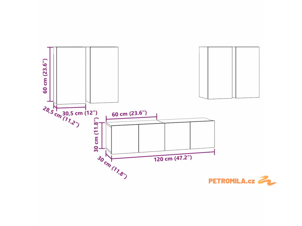- 2 x Nástěnná skříňka na TV (vertikální). 4 x Nástěnná skříňka na TV (horizontální)