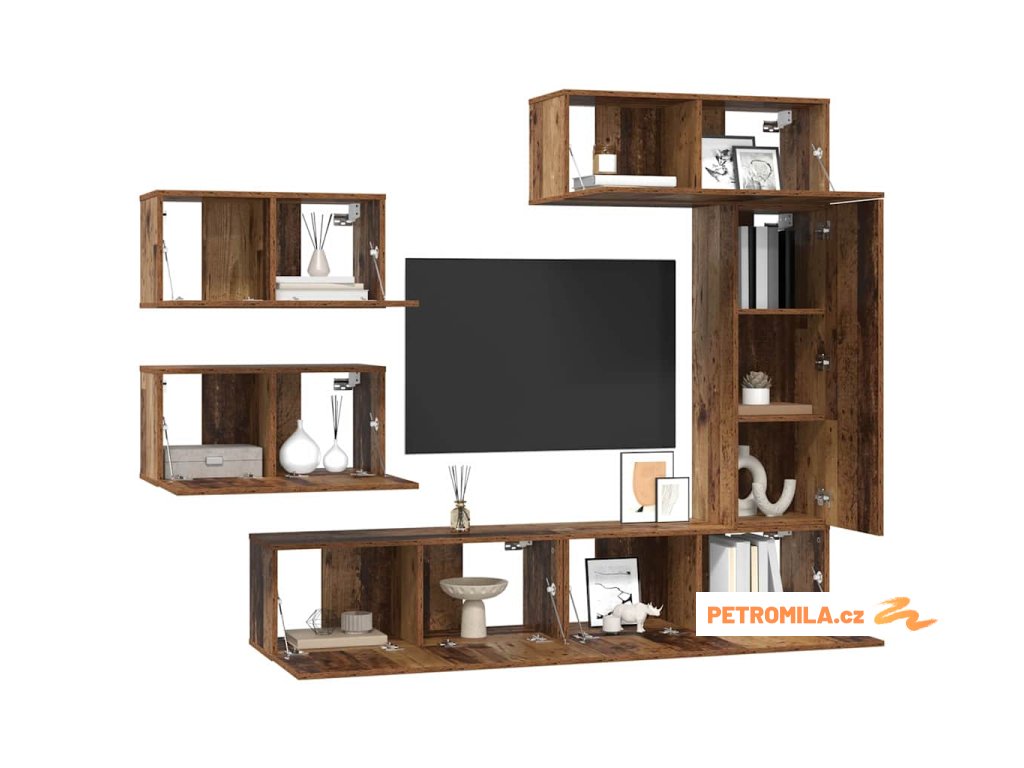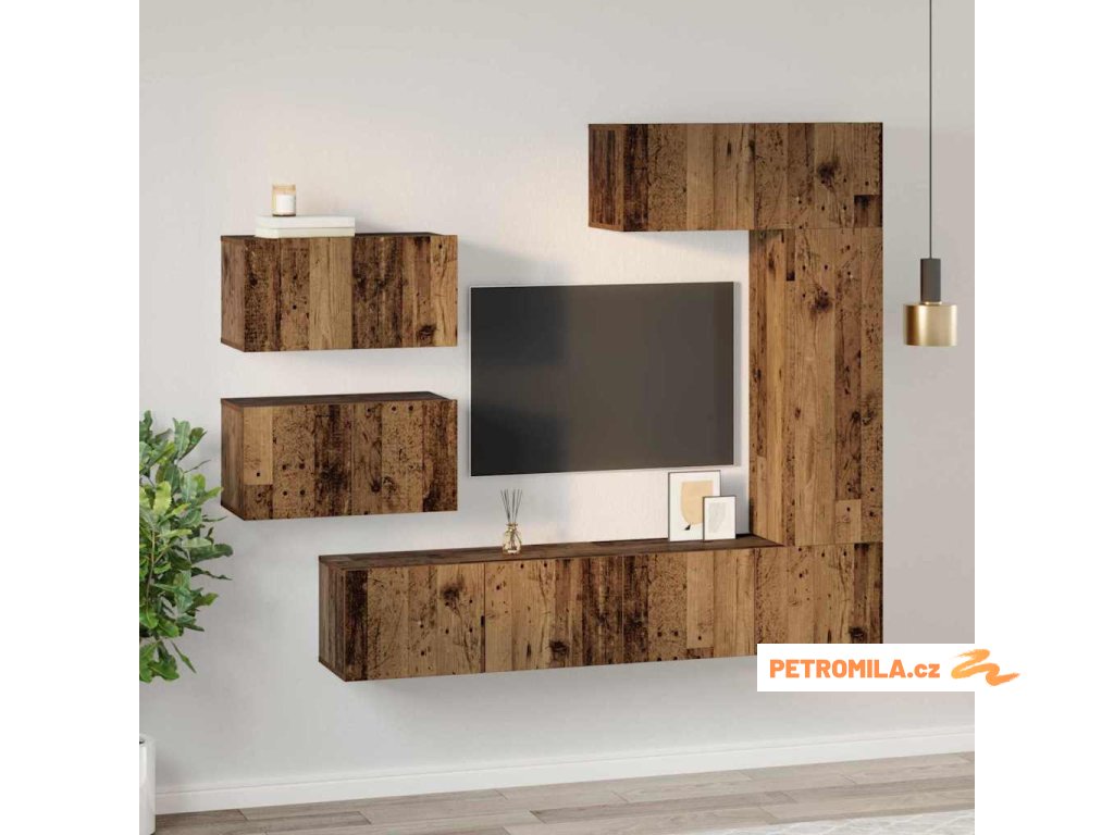 Sestava TV skříněk Nástěnný 6 pcs Staré dřevo 30.5 x 30 x 90 cm