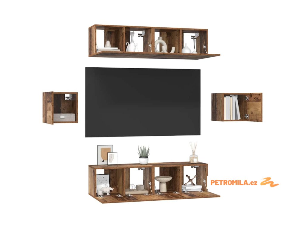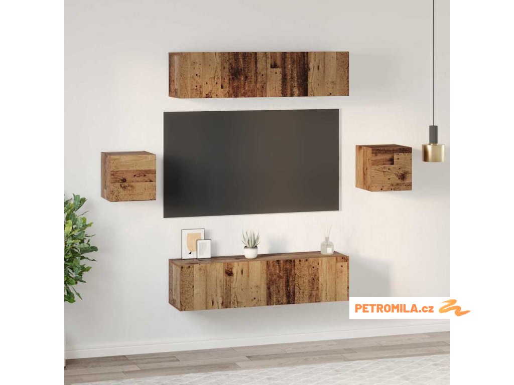 Sestava TV skříněk Nástěnný 6 pcs Staré dřevo Kompozitní dřevo