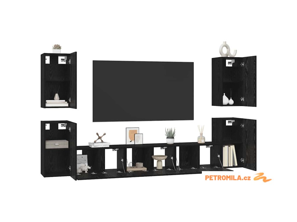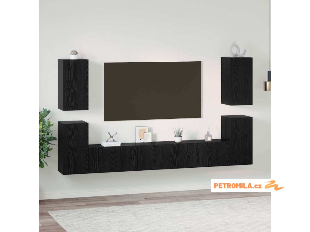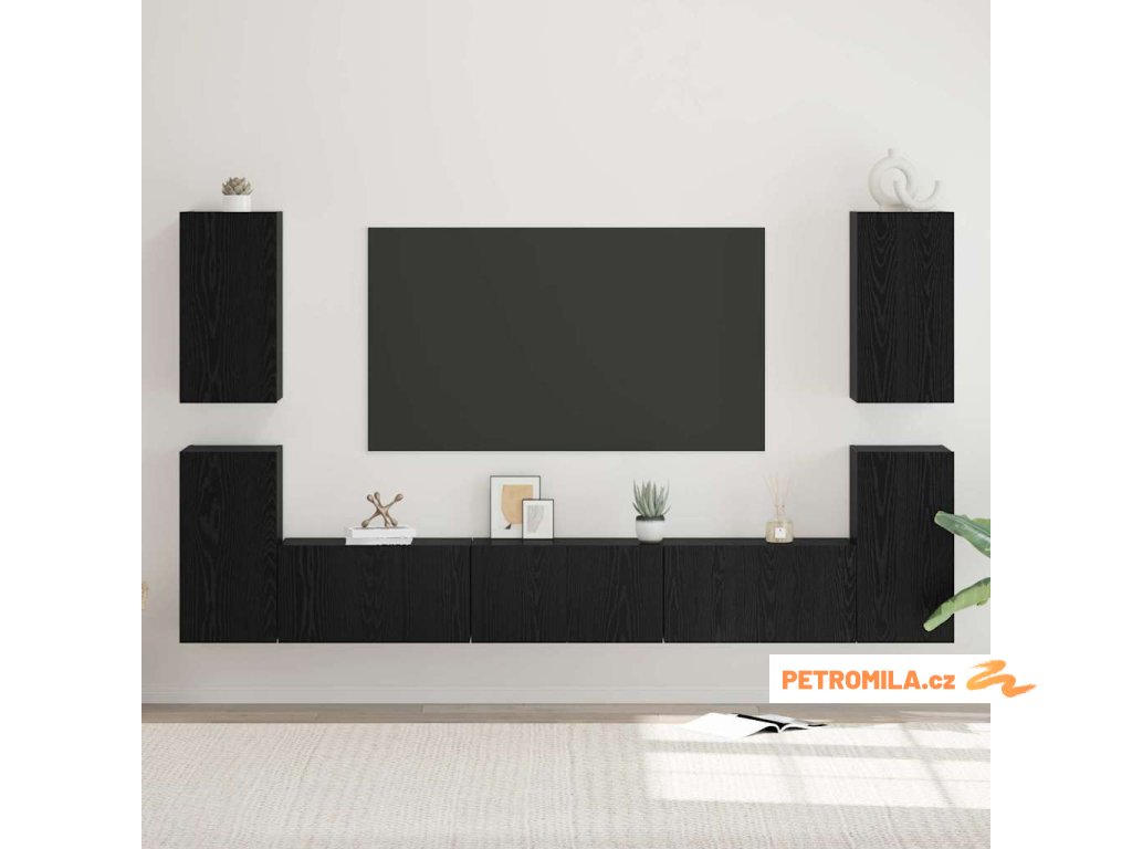 Sestava TV skříněk Nástěnný 7 pcs Černý dub 60 x 30 x 30 cm