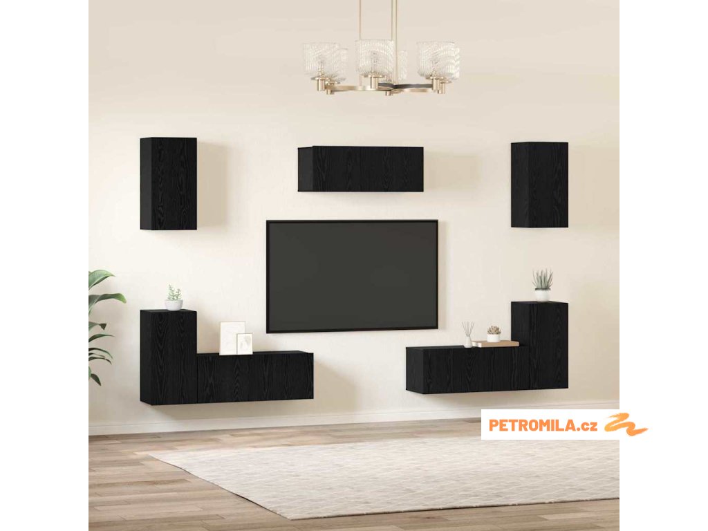 Sestava TV skříněk Nástěnný 7 pcs Černý dub 80 x 30 x 30 cm