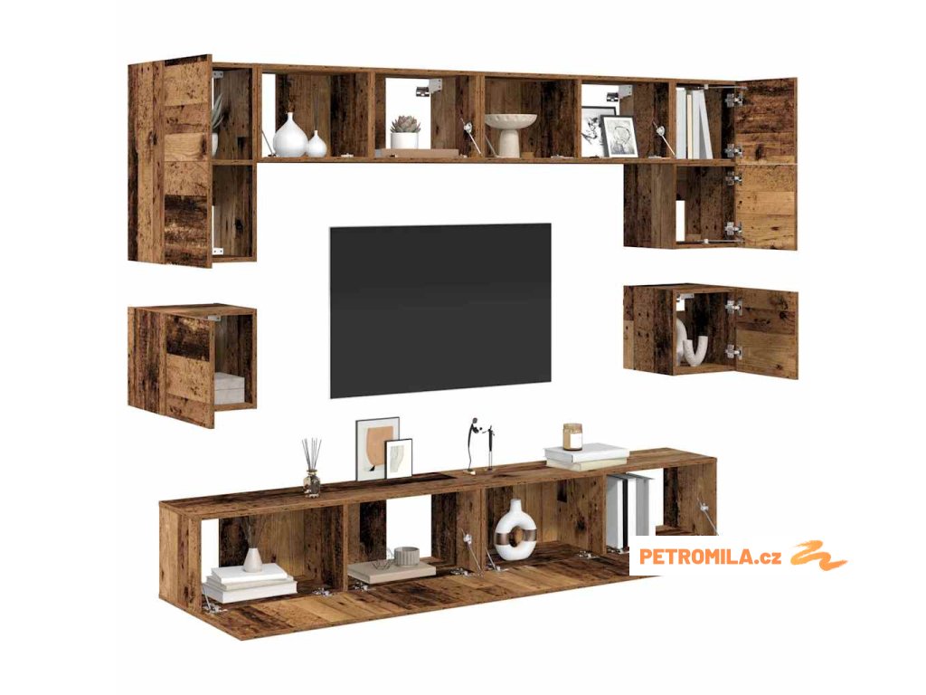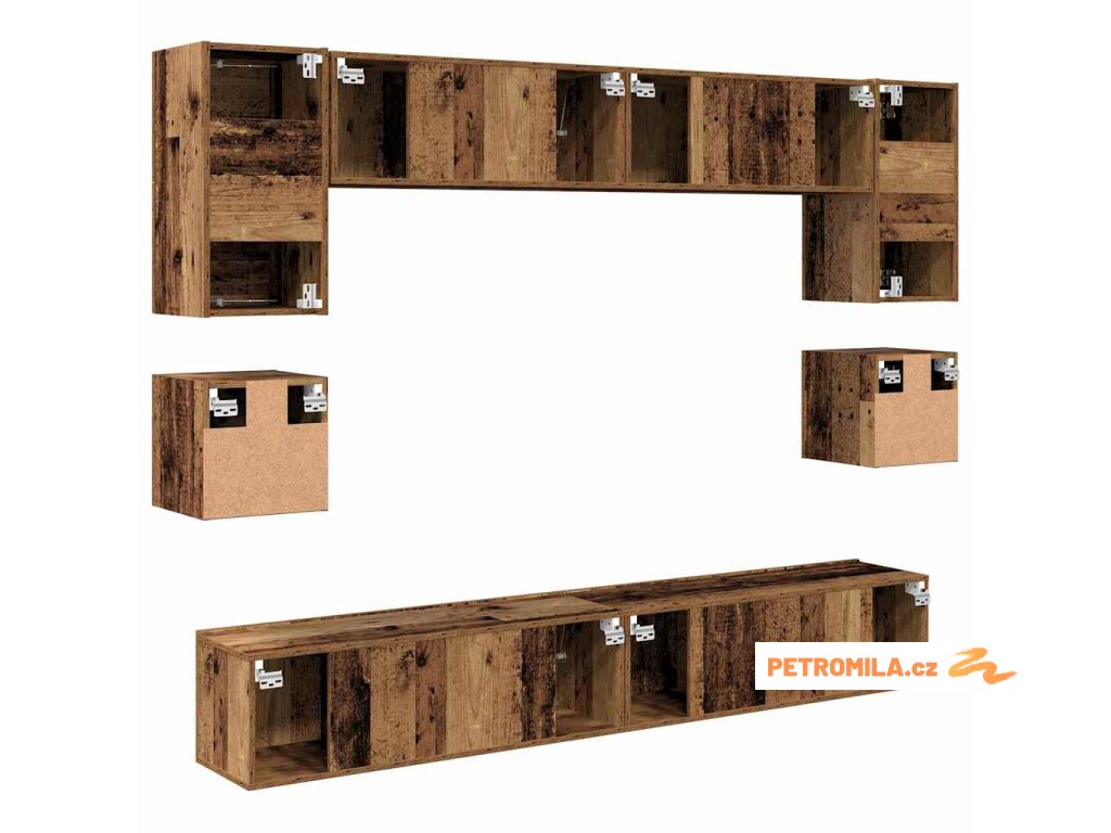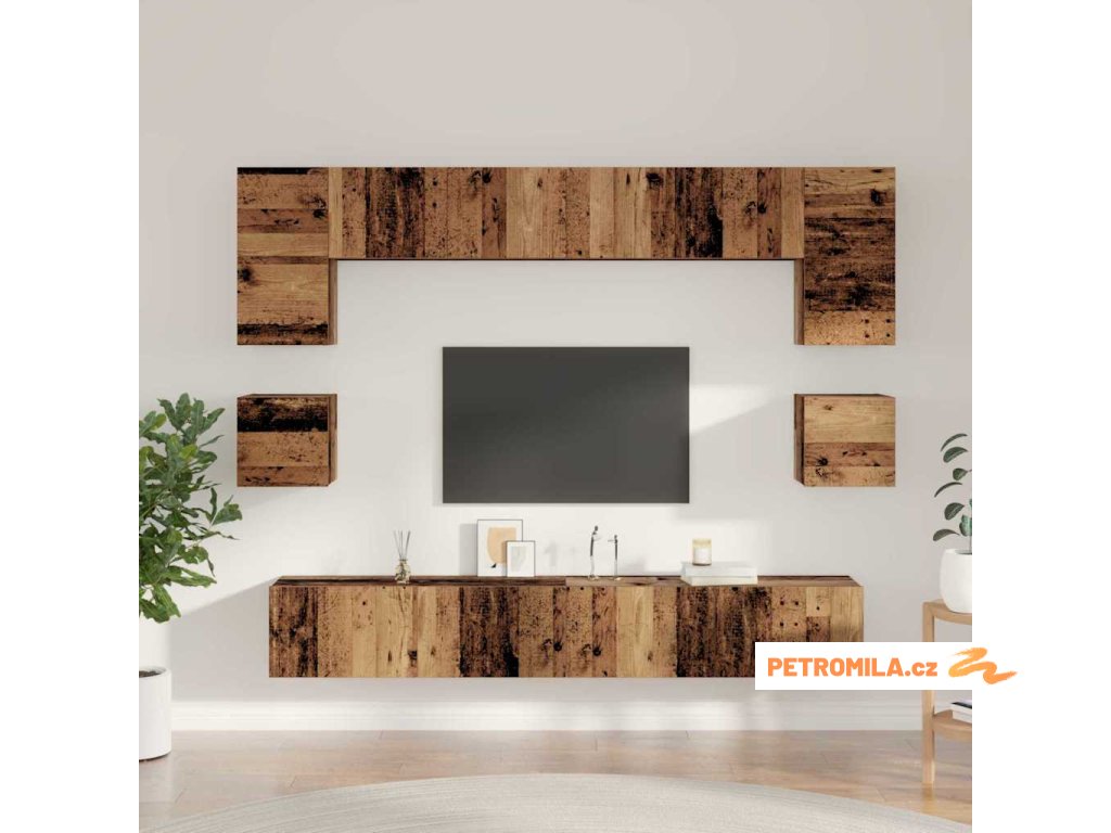Sestava TV skříněk Nástěnný 8 pcs Staré dřevo Kompozitní dřevo