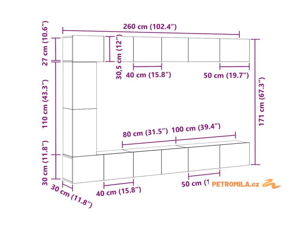 Sestava TV skříněk Nástěnný 9 pcs Černý dub 30.5 x 30 x 110 cm