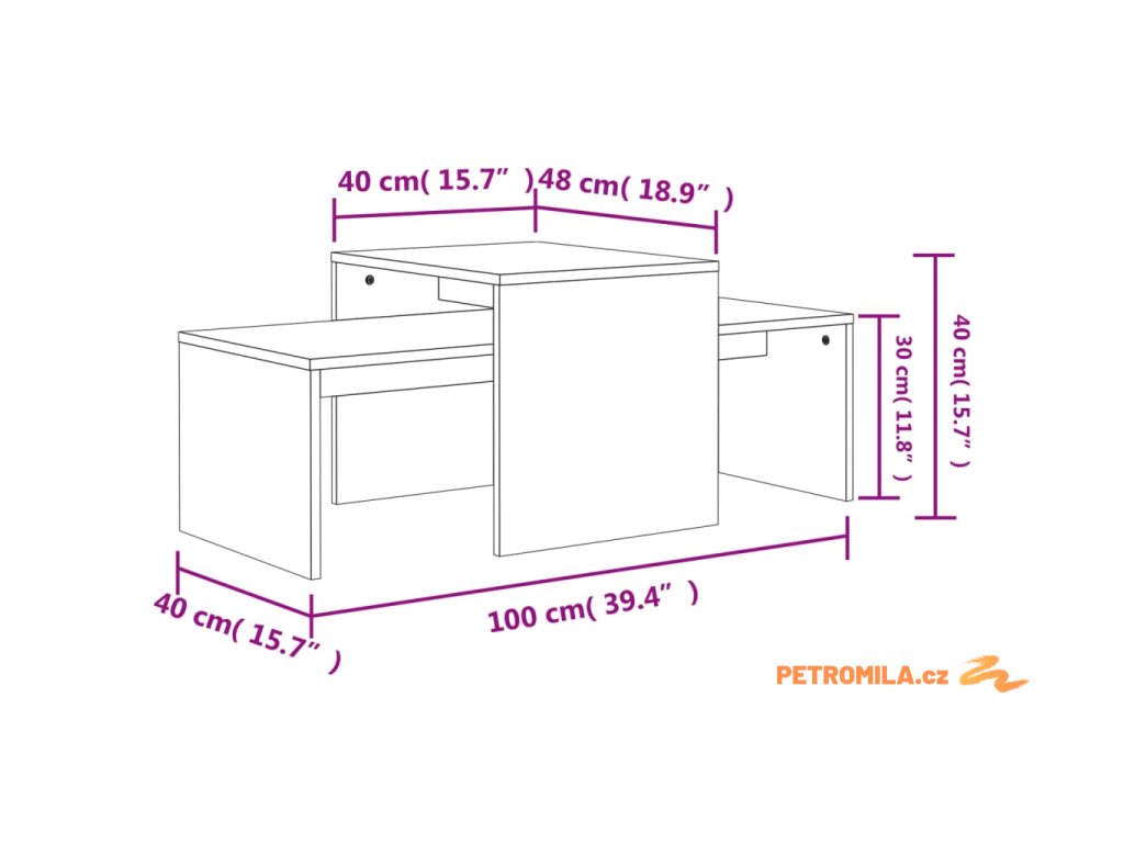 - Rozměry nižšího stolku: 100 x 40 x 30 cm (D x Š x V)