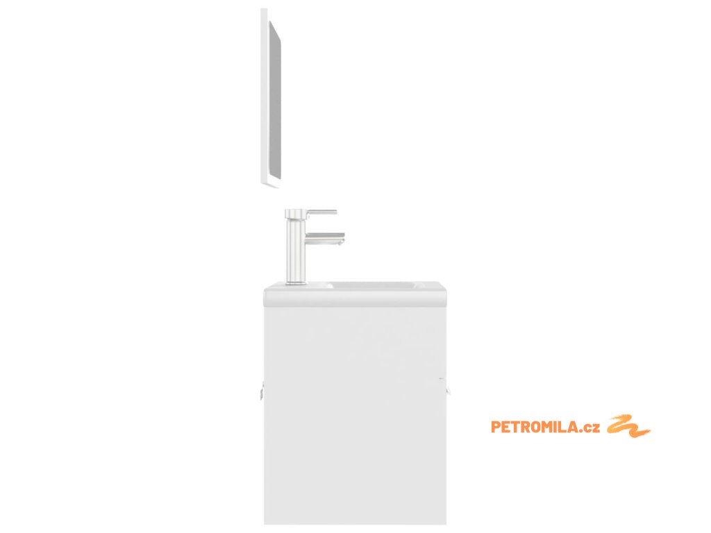 Tento stylový set koupelnového nábytku sestává ze skříňky pod umyvadlo, umyvadla s baterií a zrcadla, které vynikají svým originálním, úhledným provedením. Dokonale se proto hodí do každé koupelny nebo na toaletu.