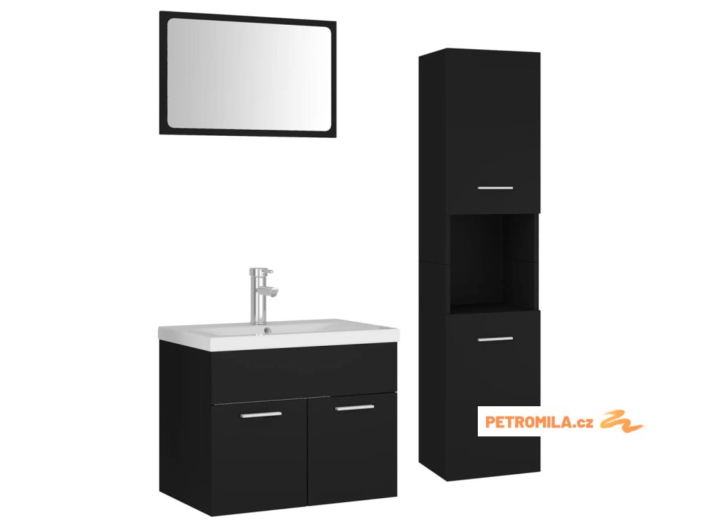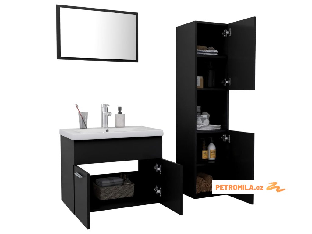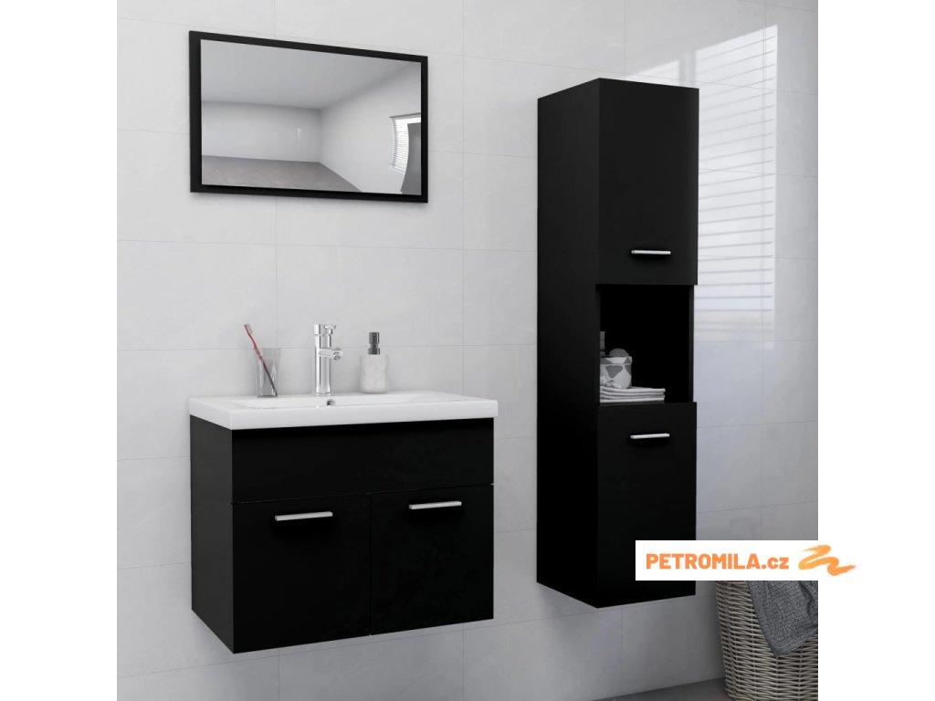 Set koupelnového nábytku černý dřevotříska