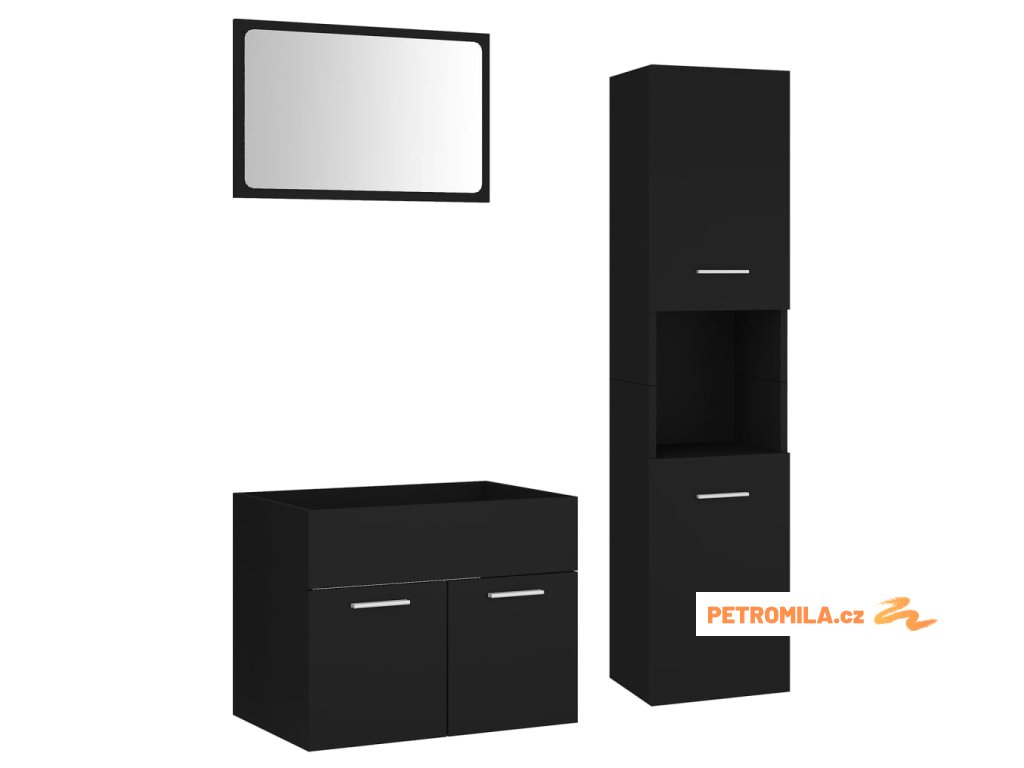 Sada nábytku obsahuje skříňku pod umyvadlo, vysokou skříň a zrcadlo. Stylová umyvadlová skříňka má 1 přihrádku a nahoře je ideálně uzpůsobená k umístění umyvadla. Ve vysoké skříni najdete za dvěma dvířky celkem 5 přihrádek, které vám poskytnou spoustu místa k uložení vašich věcí. Zrcadlo zase dodá vaší domácnosti nový půvab. Celý set koupelnového nábytku snadno očistíte navlhčeným hadříkem.