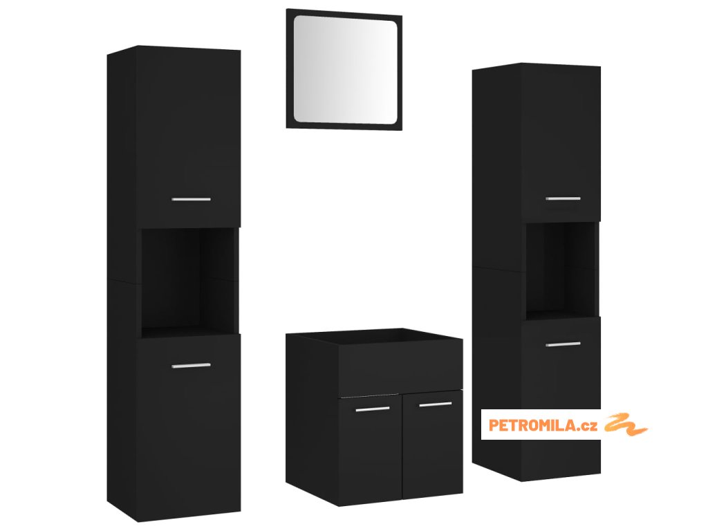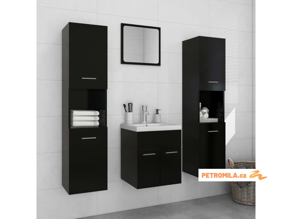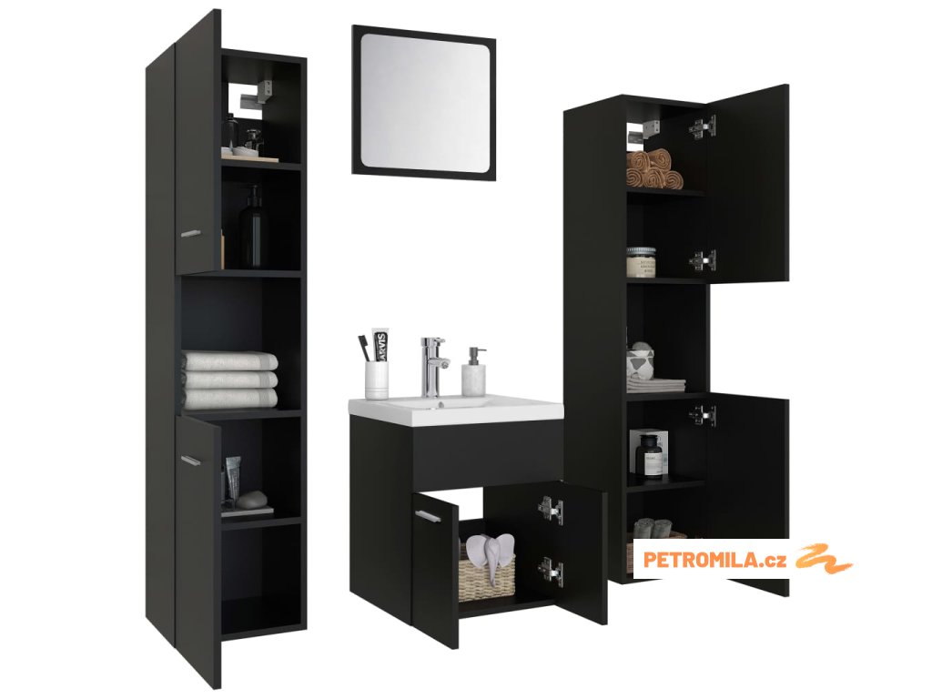 Sada nábytku obsahuje skříňku pod umyvadlo, 2 vysoké skříně a zrcadlo. Stylová umyvadlová skříňka má 1 přihrádku a nahoře je ideálně uzpůsobená k umístění umyvadla. V každé z vysokých skříní najdete za dvěma dvířky celkem 5 přihrádek, které vám poskytnou spoustu místa k uložení vašich věcí. Zrcadlo zase dodá vaší domácnosti nový půvab. Celý set koupelnového nábytku snadno očistíte navlhčeným hadříkem.