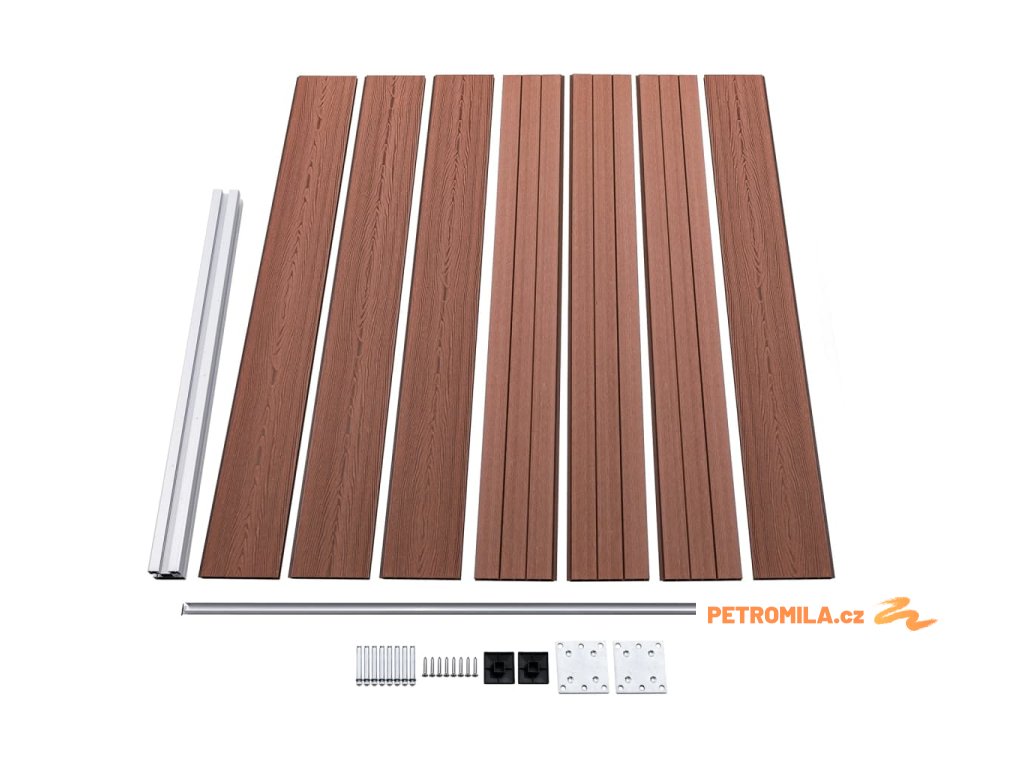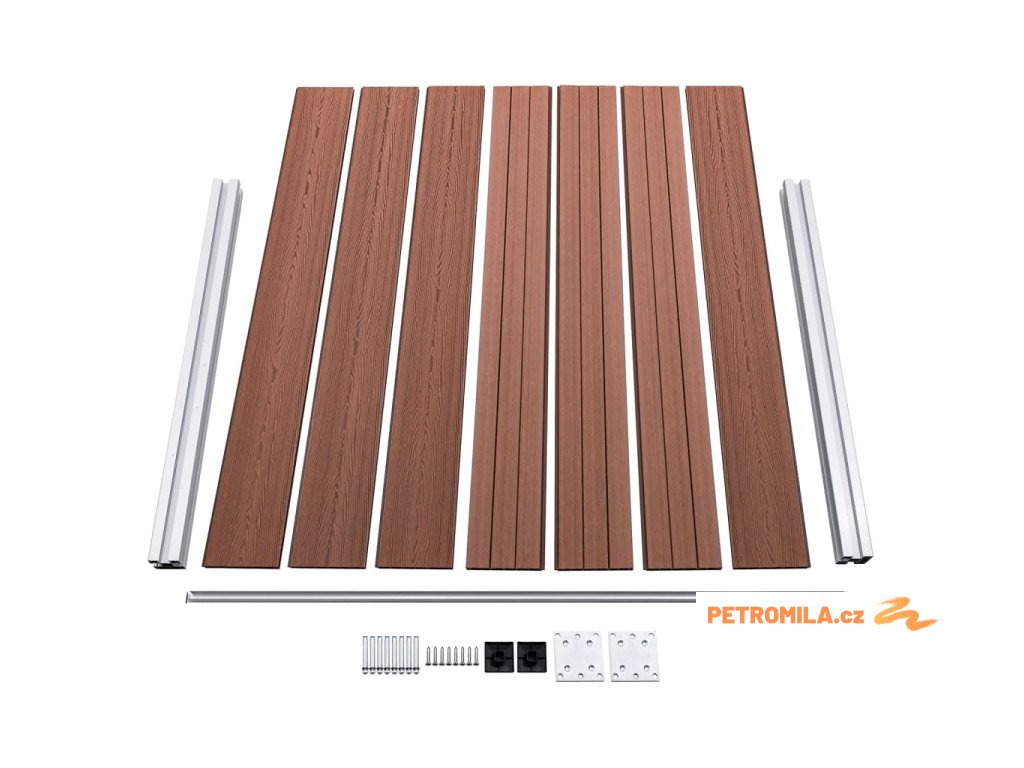 - Materiál: WPC (dřevoplast), hliník, ocel