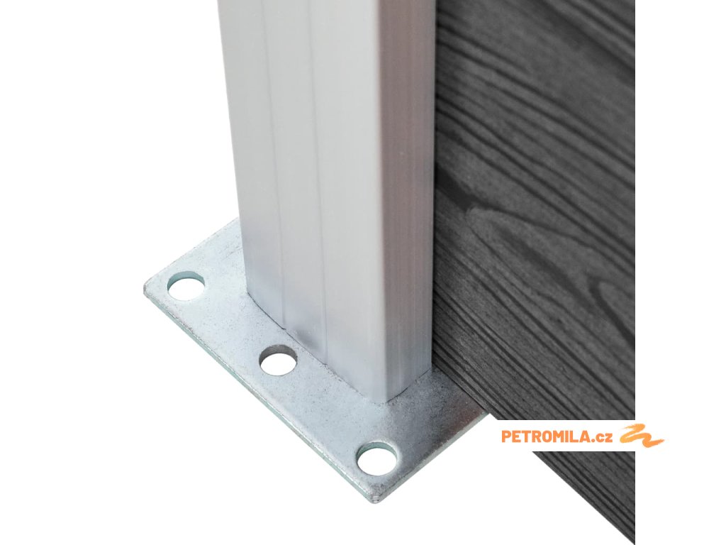- Materiál: WPC (dřevoplast), hliník, ocel