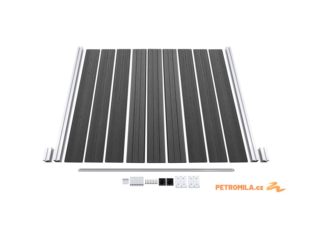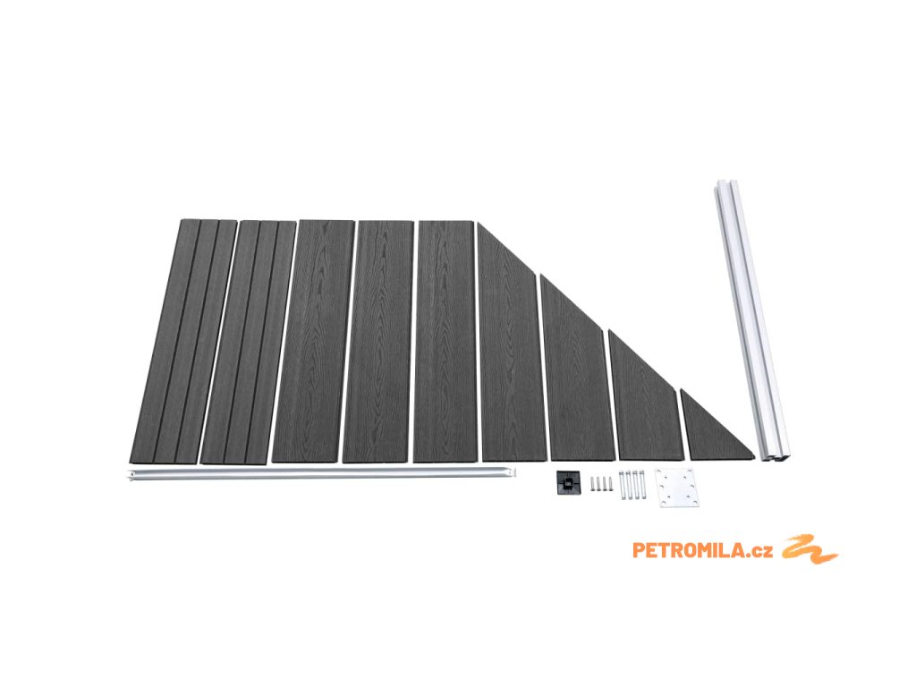 - Materiál: WPC (dřevoplast), hliník, ocel