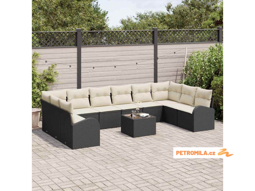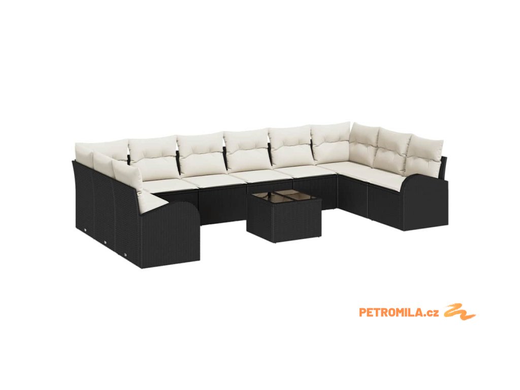 11dílná zahradní sedací souprava s poduškami černá polyratan
